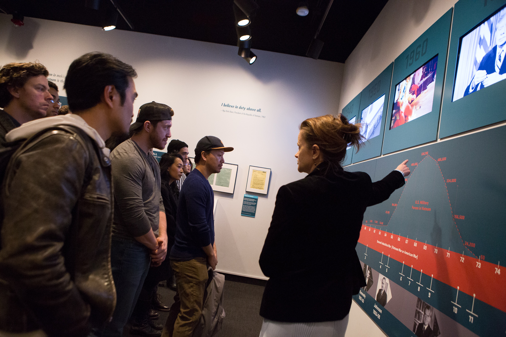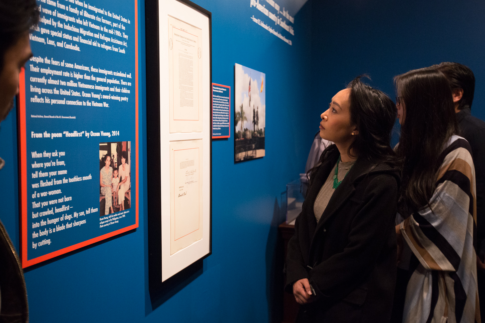 “I am feeling a bit overwhelmed by this feeling of how much I didn’t know about the Vietnam War and how few conversations I had growing up about [it],” Emmons said, “and just how complex it is . . . [the] many different nuances, details, and sides there are to that story. So this exhibit—seeing the actual documents, records, and letters—helped solidify that in a very real place for me.