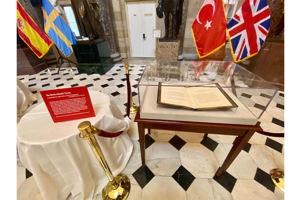 The treaty is currently on temporary display at the Department of State National Museum of American Diplomacy as part of the exhibit The Road to NATO: Building the Transatlantic Alliance. It will be featured until September 26 alongside other NATO-related documents and artifacts.