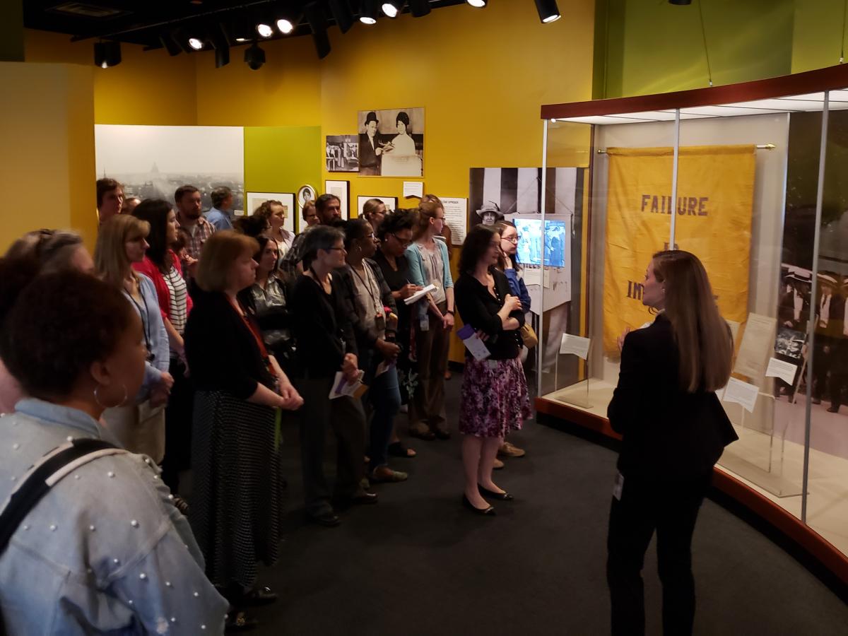 Deputy Archivist of the United States Debra Steidel Wall, who is also a member of the Women’s Suffrage Centennial Commission, was on hand to welcome staff members for a sneak peek at the exhibit early this morning before it opened to the public.