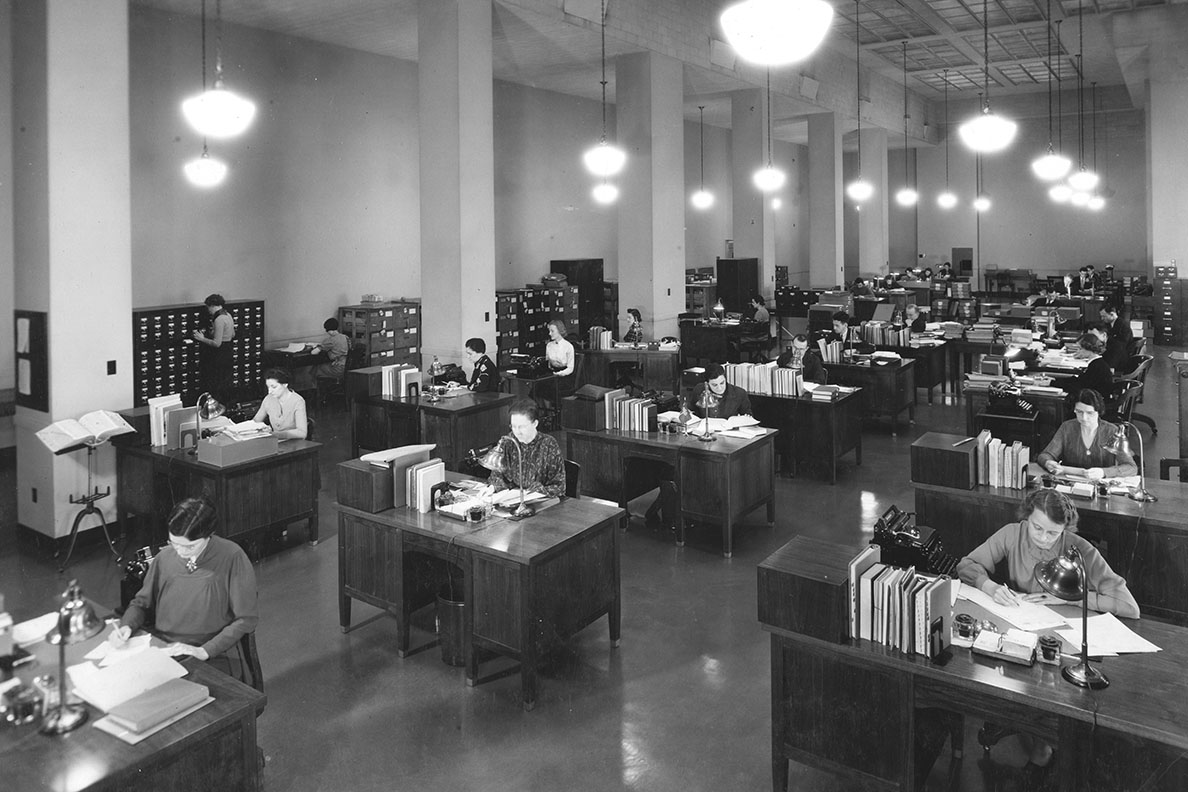 The National Archives Divisions of Cataloging and Classification, January 15, 1937, Washington, DC. View in National Archives Catalog