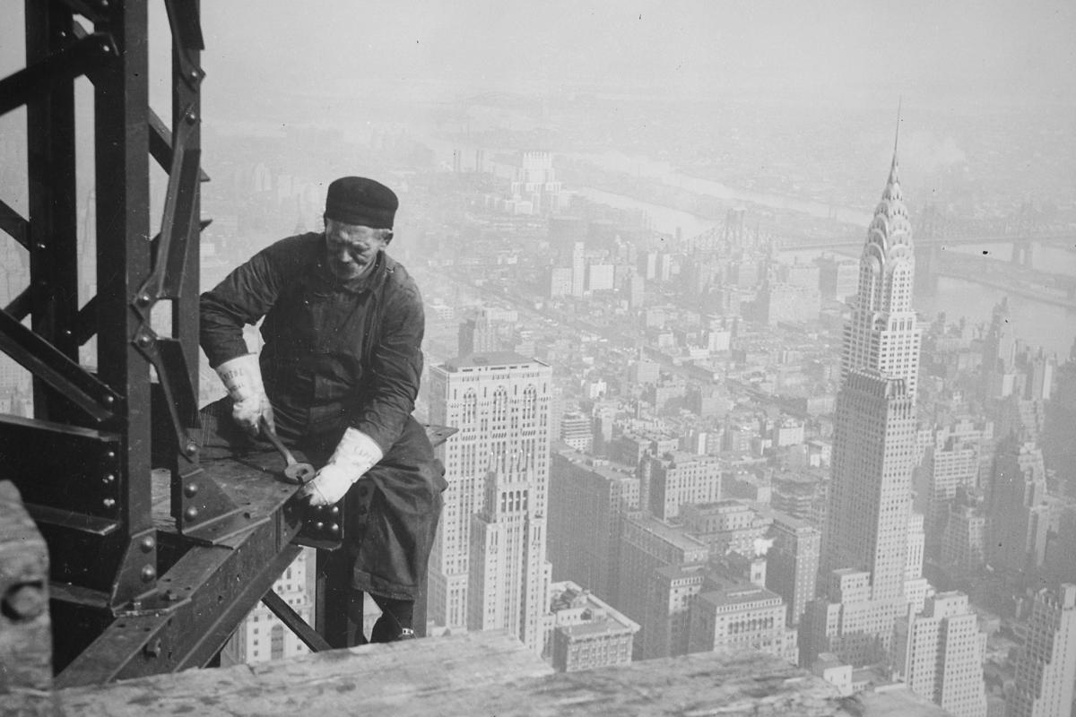 A workman on the framework of the Empire State Building, New York City. Photo by Lewis Hine. View in National Archives Catalog