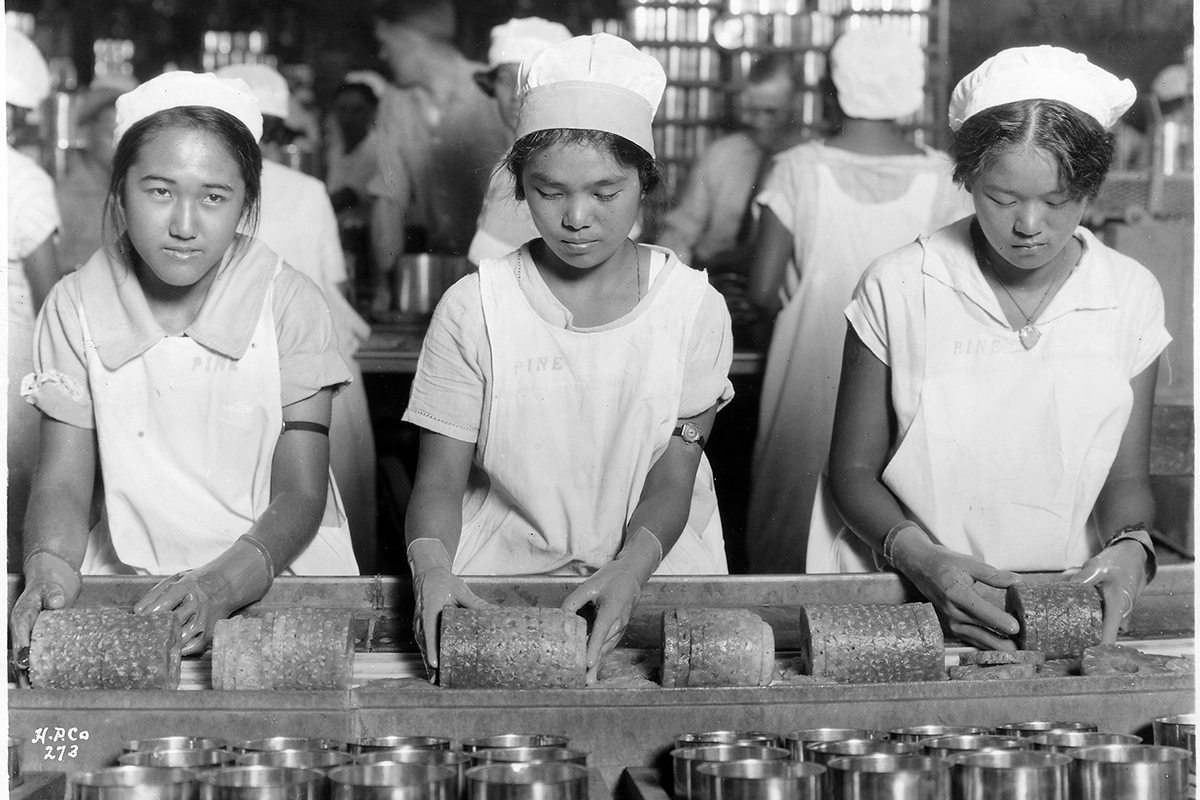 Native girls packing pineapple into cans. By Edgeworth, taken for the Katakura & Company, November 20, 1928. National Archives, Records of the Women s Bureau