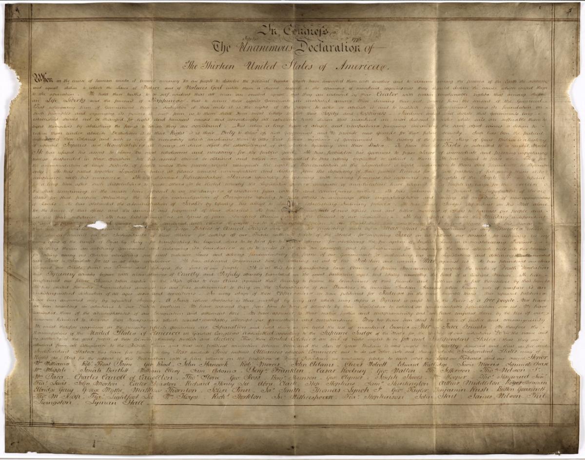 The Declarations Resource Project set out to build a database of all known editions of the Declaration of Independence as an informative and educational resource about the Declaration. The original Declaration of Independence, also known as “The Matlack Declaration” scribed by Timothy Matlack, is preserved and displayed at the National Archives Rotunda.
