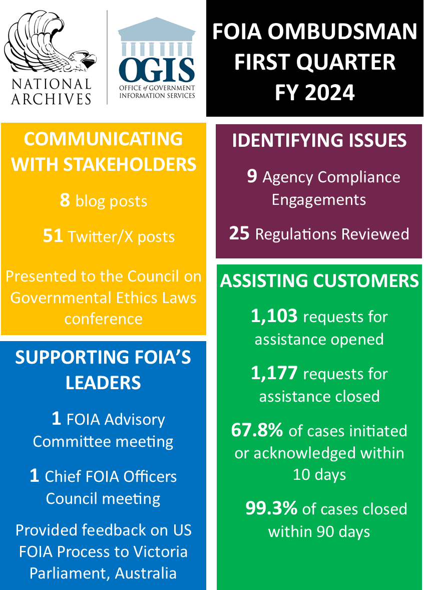 Quarterly data for the first quarter of fiscal year 2024 from the FOIA Ombudsman office.
