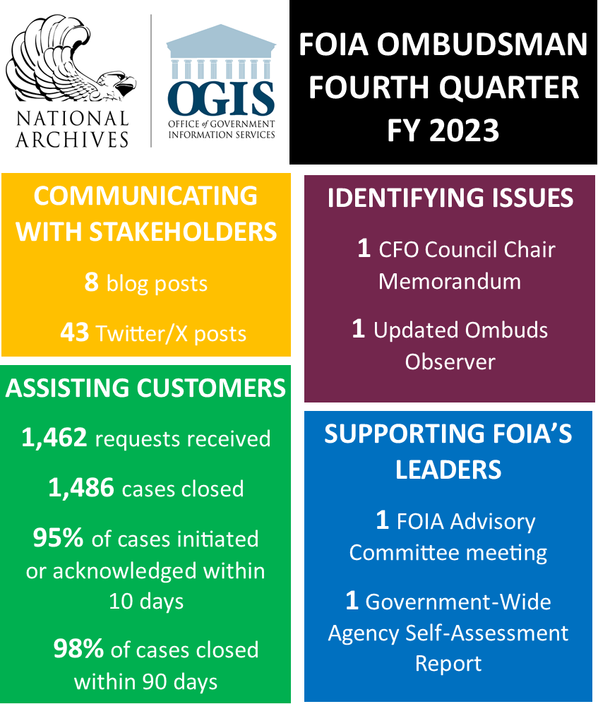 Quarterly data for the fourth quarter of fiscal year 2023 from the FOIA Ombudsman office.