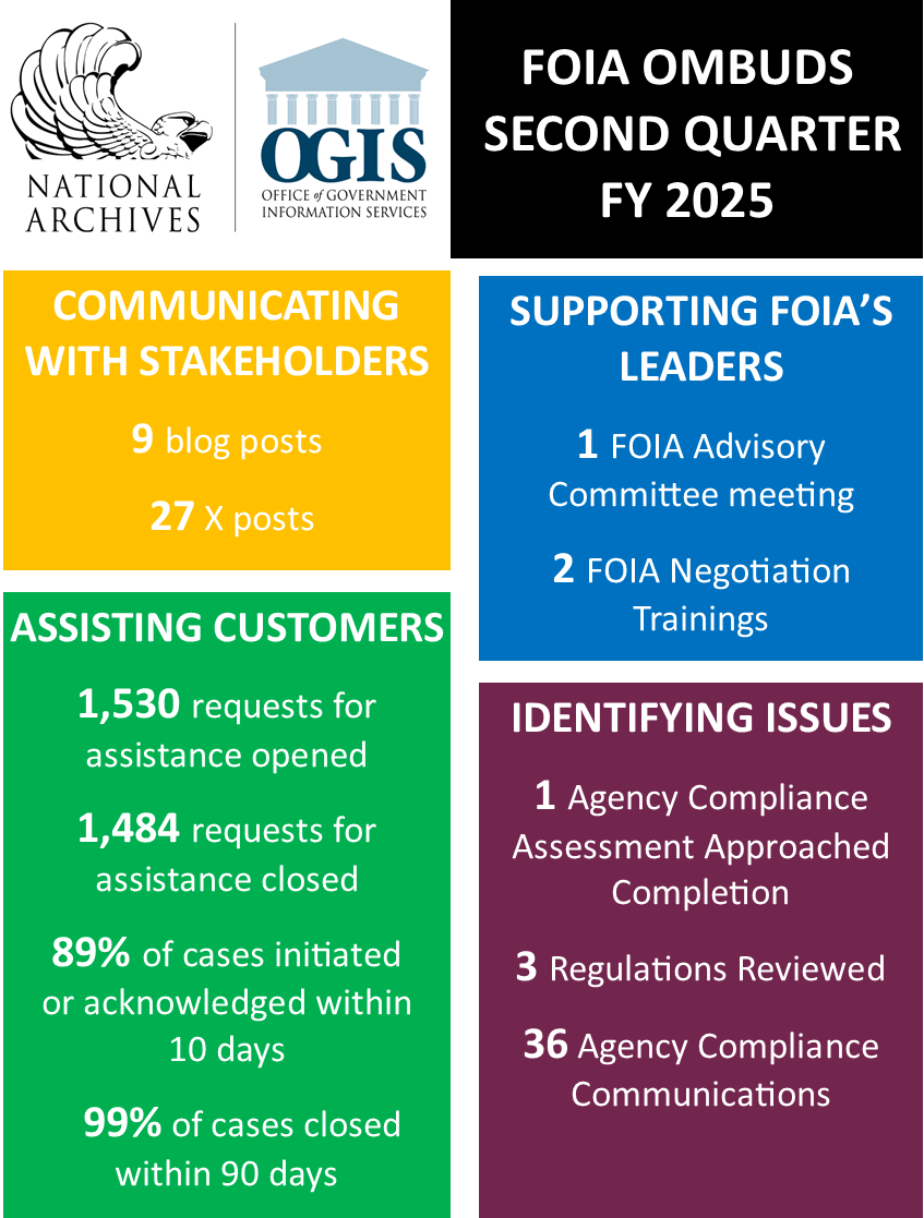 Quarterly data for the second quarter of fiscal year 2025 from the FOIA Ombuds office