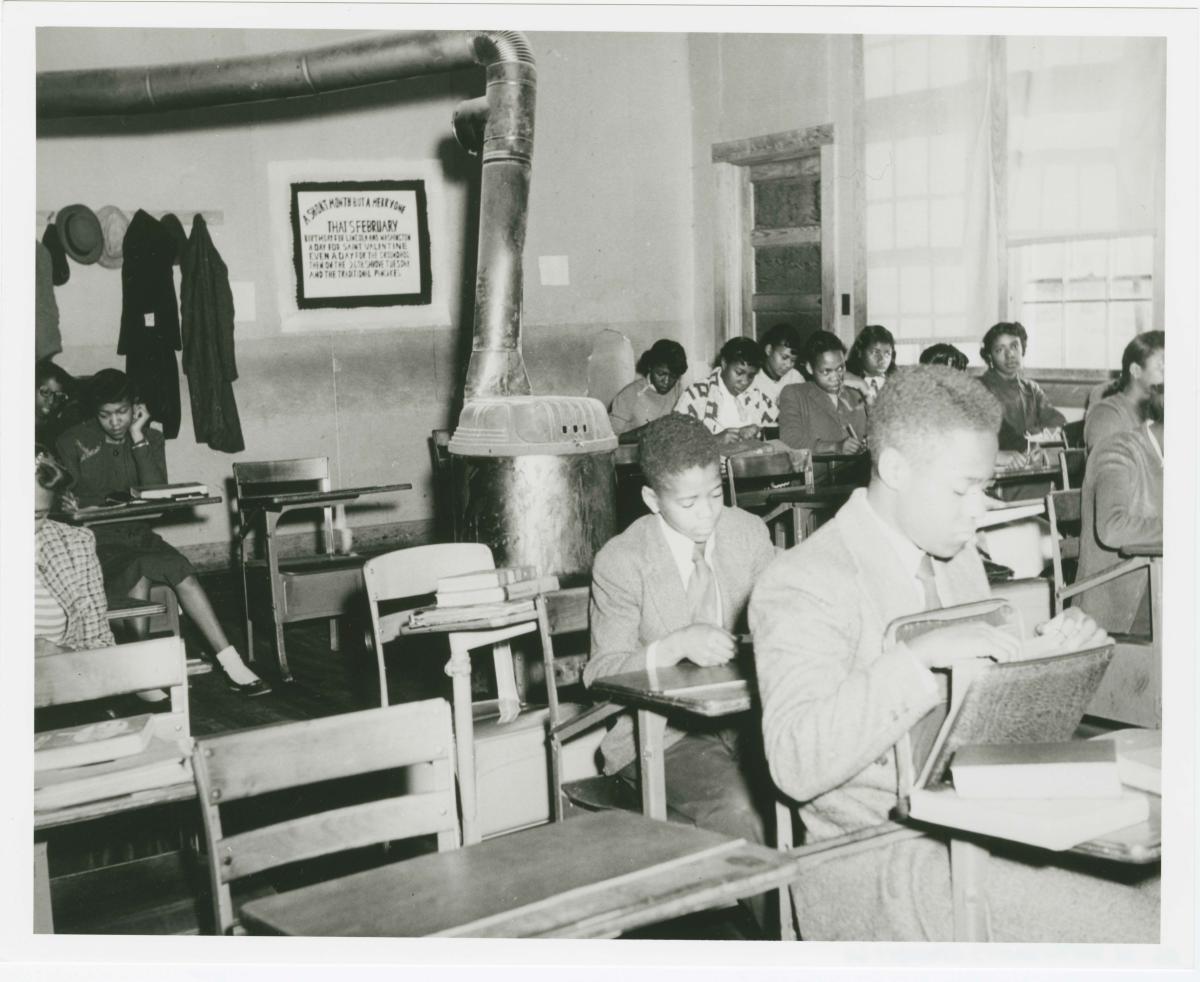 This photograph is of a ninth grade English class at R.R. Moton High School in Prince Edward County, VA, that was submitted by the defense in the civil litigation Dorothy E. Davis, et al. v. County School Board of Prince Edward County, et al. in May 1951.