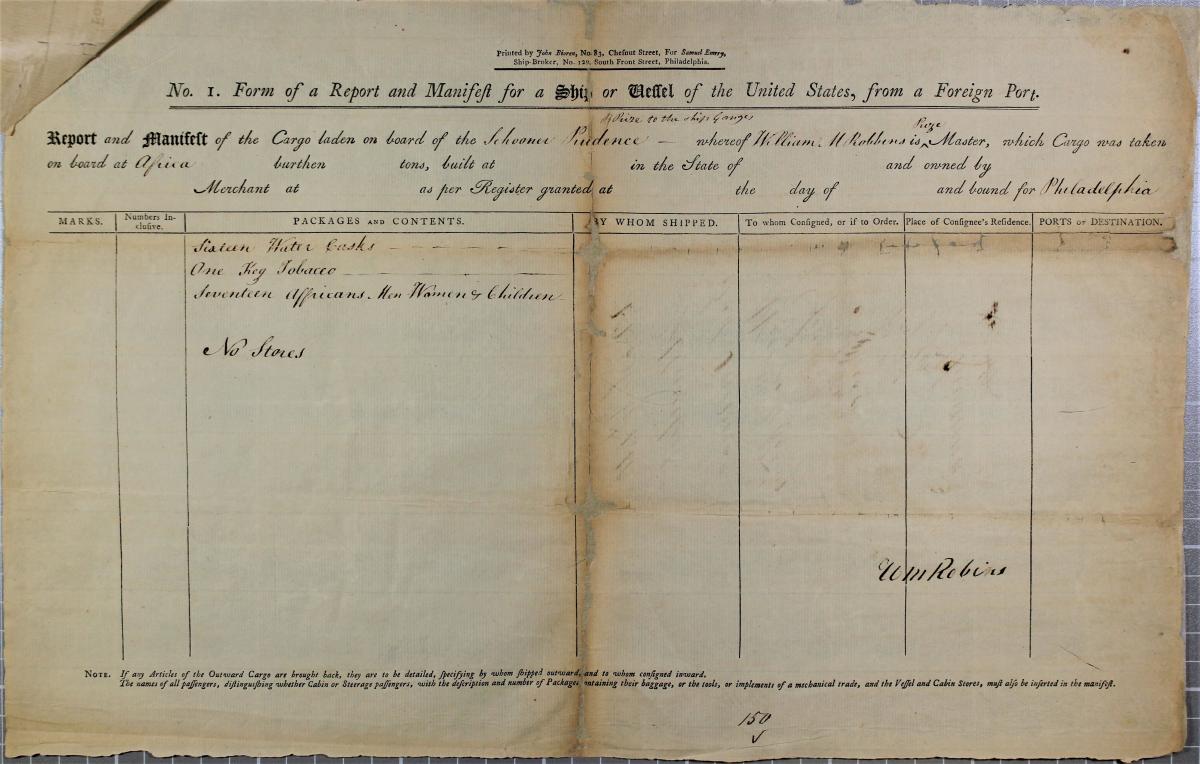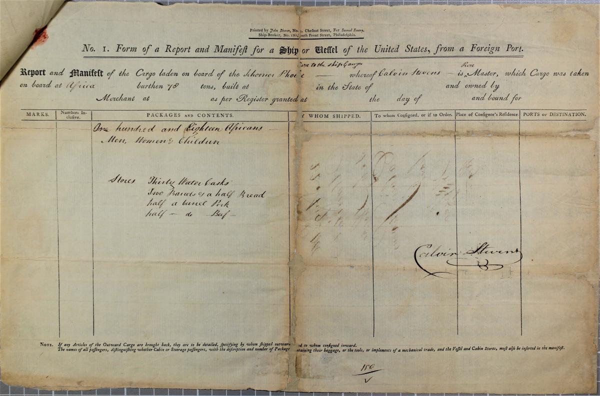 View and download the manifests of the vessels Phoebe and Prudence on the National Archives Catalog. You can explore more records held in the National Archives at Philadelphia through the National Archives Catalog or by visiting the National Archives at Philadelphia. These records are located in Record Group 36: Records of the U.S. Customs Service, Series: Manifests for the Port of Philadelphia.