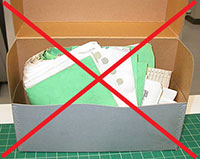 Packaging family papers and photographs for storage. Boxes, folders, rolls, sleeves, albums, and scrapbooks.