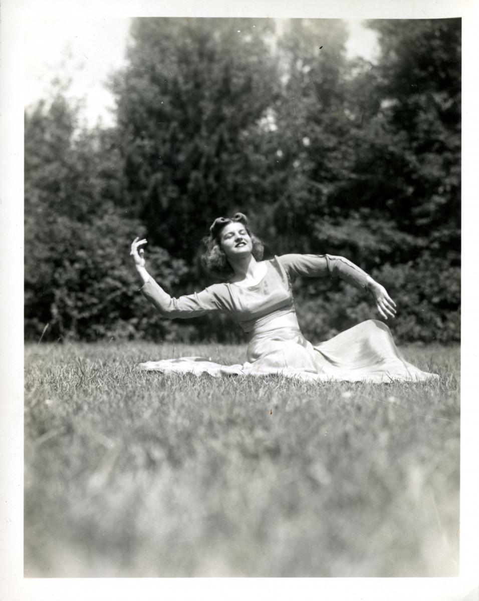 Betty Bloomer dancing at Camp Bryn Afon in Rhinelander, Wisconsin, where she worked as a dance instructor. Ca. 1940. Gerald R. Ford Presidential Library and Museum Identifier 0424-D-611