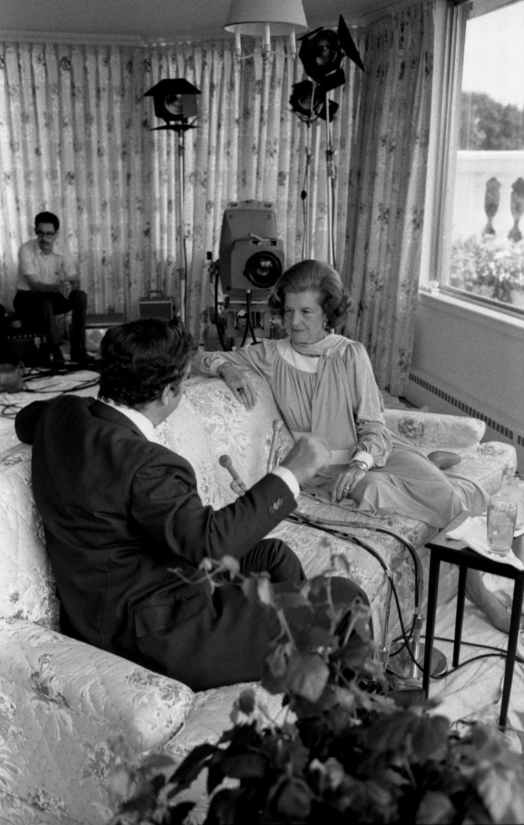 CBS correspondent Morley Safer interviews First Lady Betty Ford for a 60 Minutes segment in the White House Solarium. She candidly shared her opinions on such provocative issues as abortion rights, premarital sex, and marijuana use. July 21, 1975. Gerald R. Ford Presidential Library and Museum Identifier A5611-34A, National Archives Identifier 12007118.