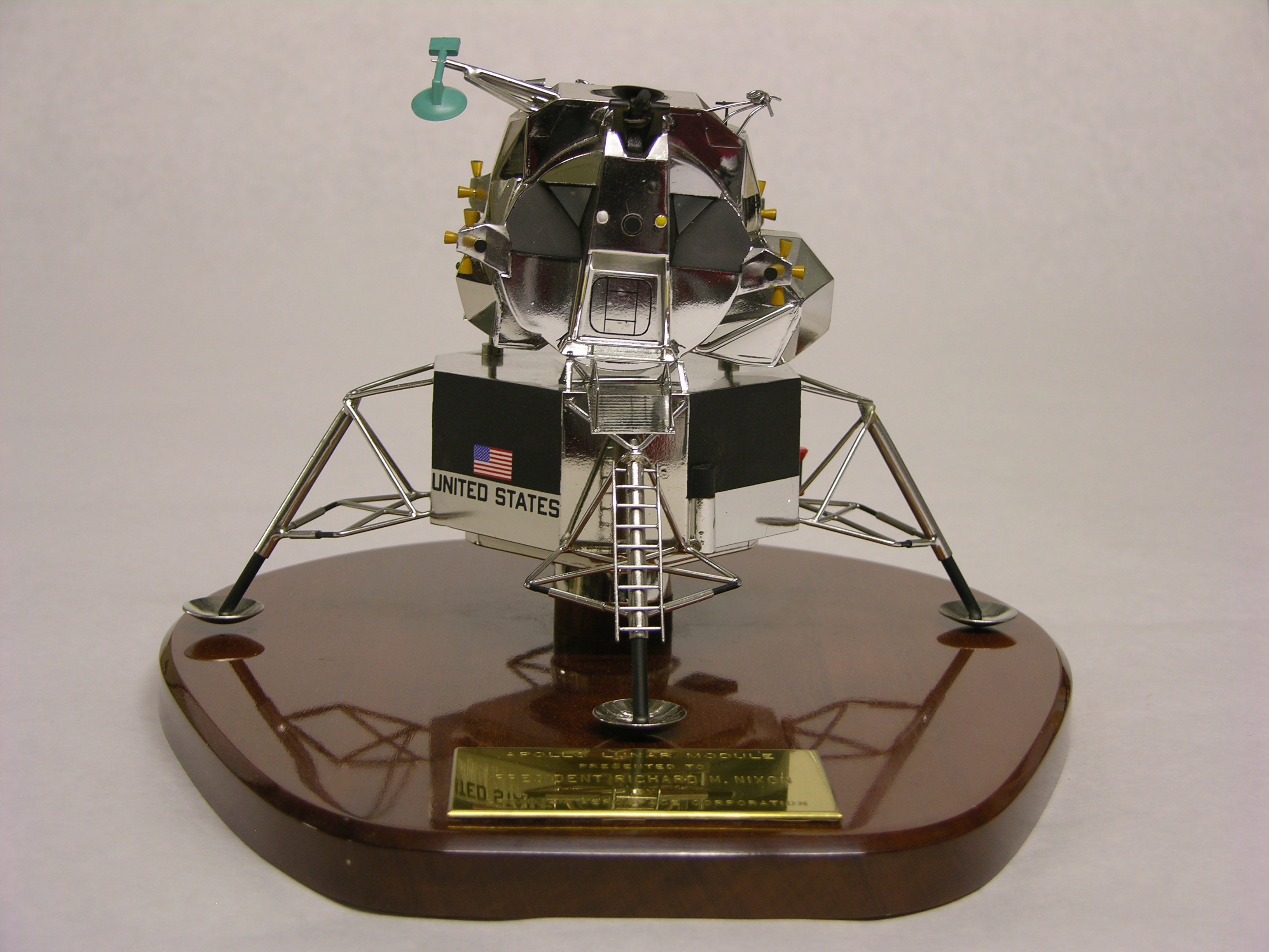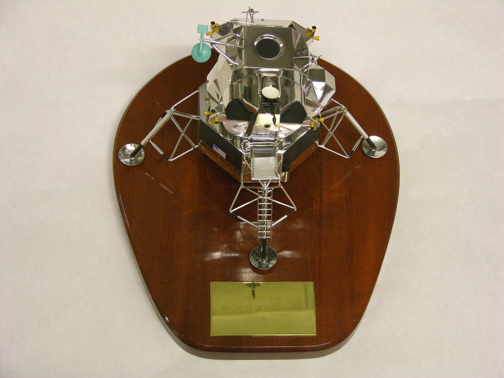 This chrome model of the Apollo Lunar Module was presented to President Nixon by the Grumman Aerospace Corporation in August 1969.