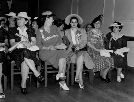 Rally of women at Austin Hotel. Lady Bird Johnson is 3rd from left. Lyndon B. Johnson's 1941 US Senate Campaign, June 6, 1941.
