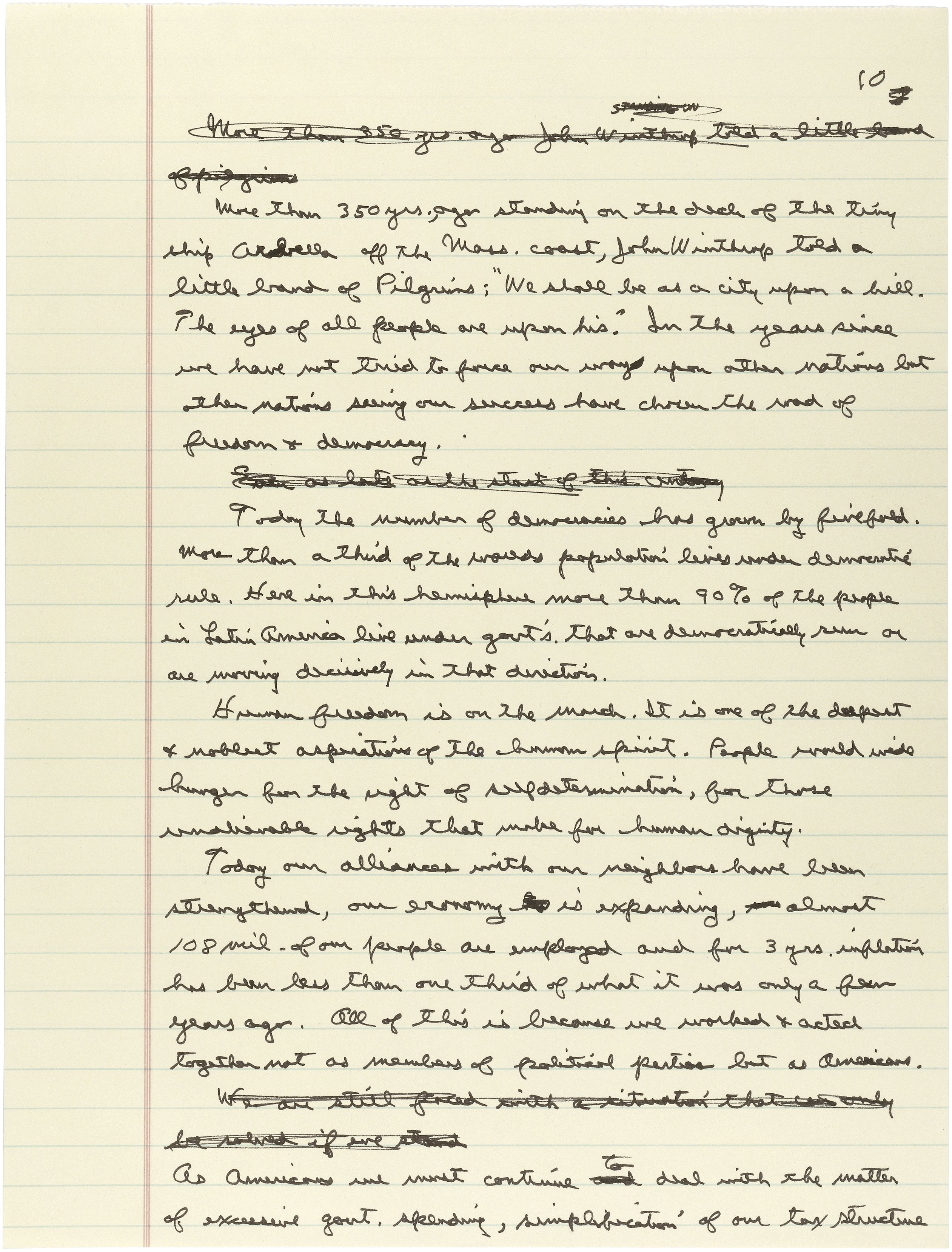• *President Reagan's handwritten draft of his second inaugural address, delivered January 21, 1985.