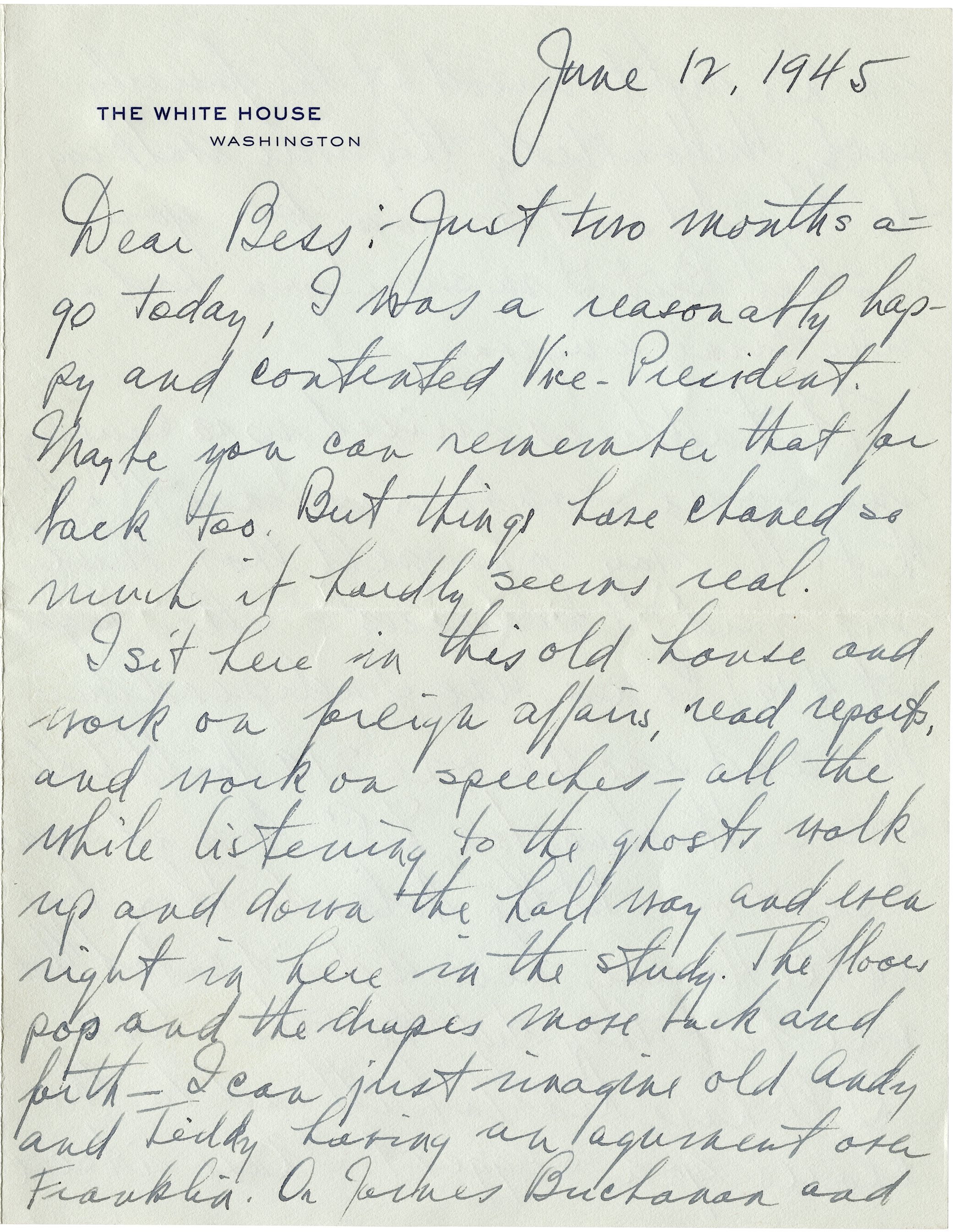 --President Harry S. Truman writing to Bess Truman from the White House, June 12, 1945