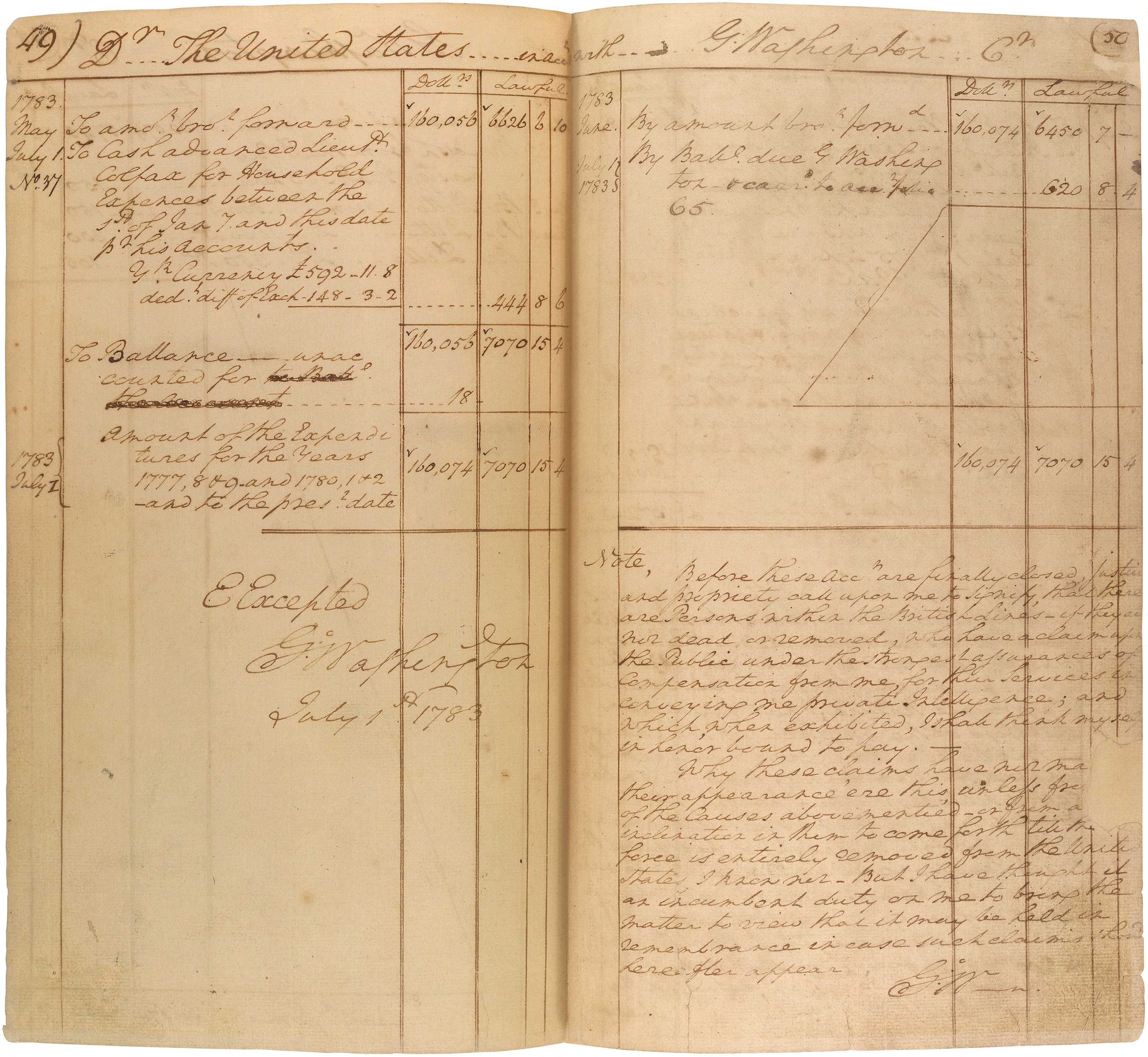 George Washington's account of expenses