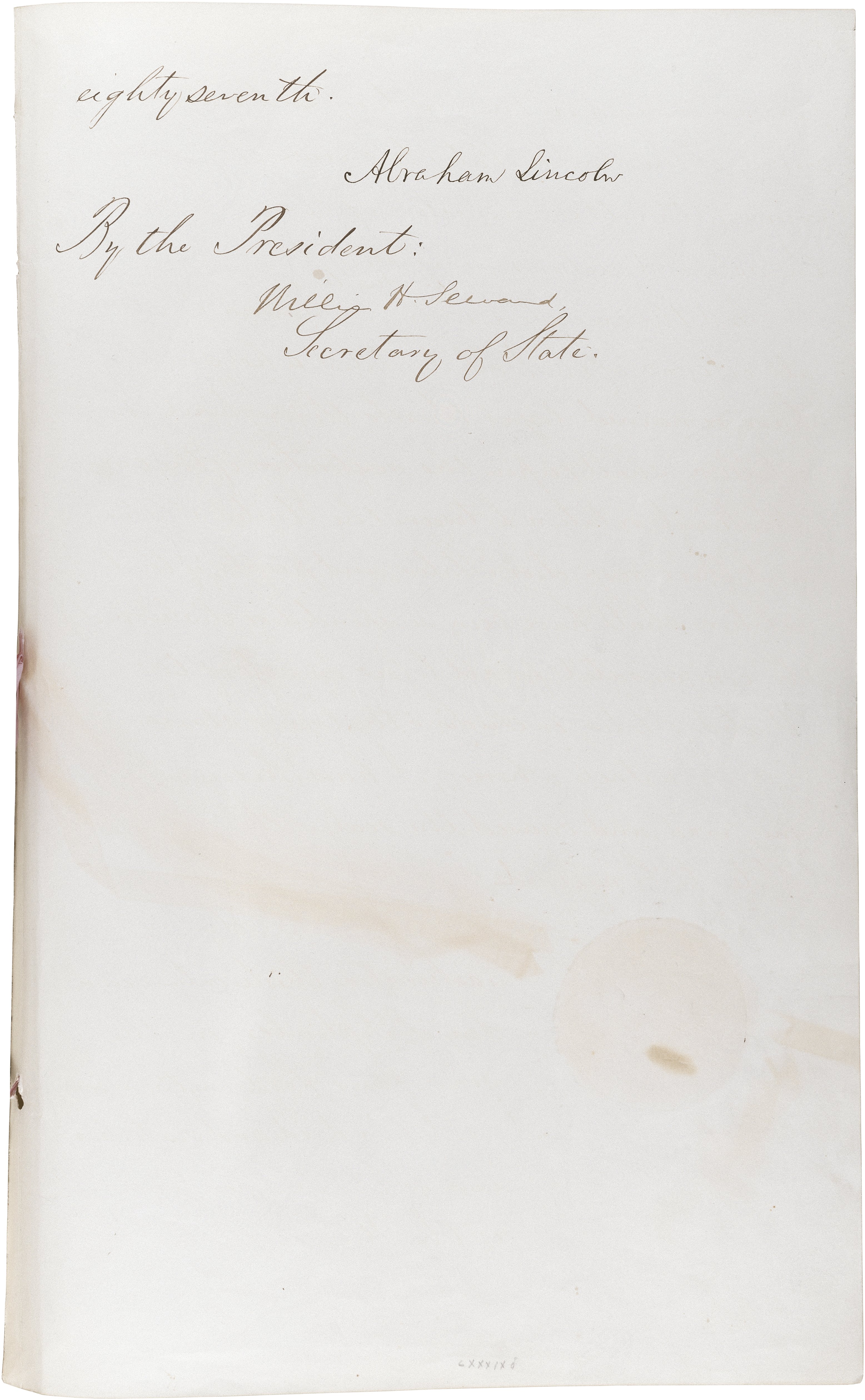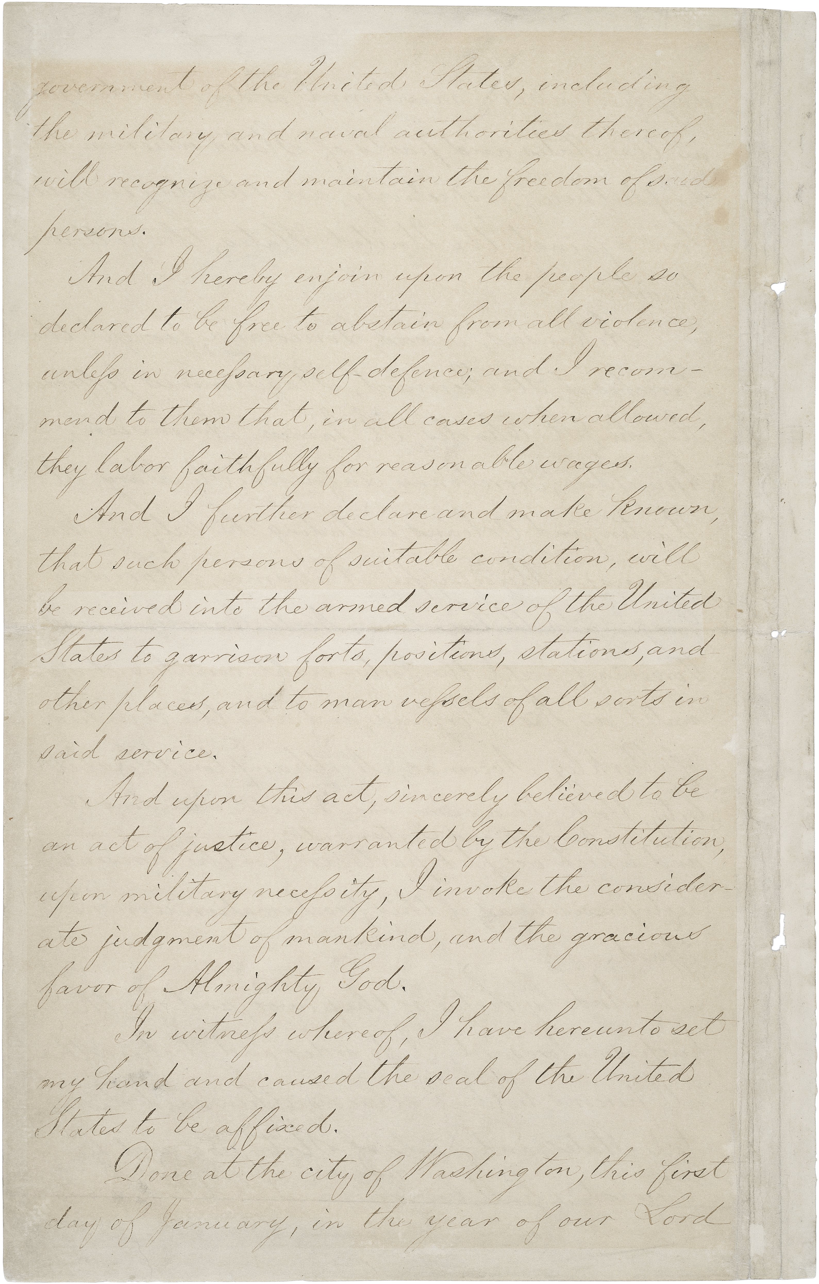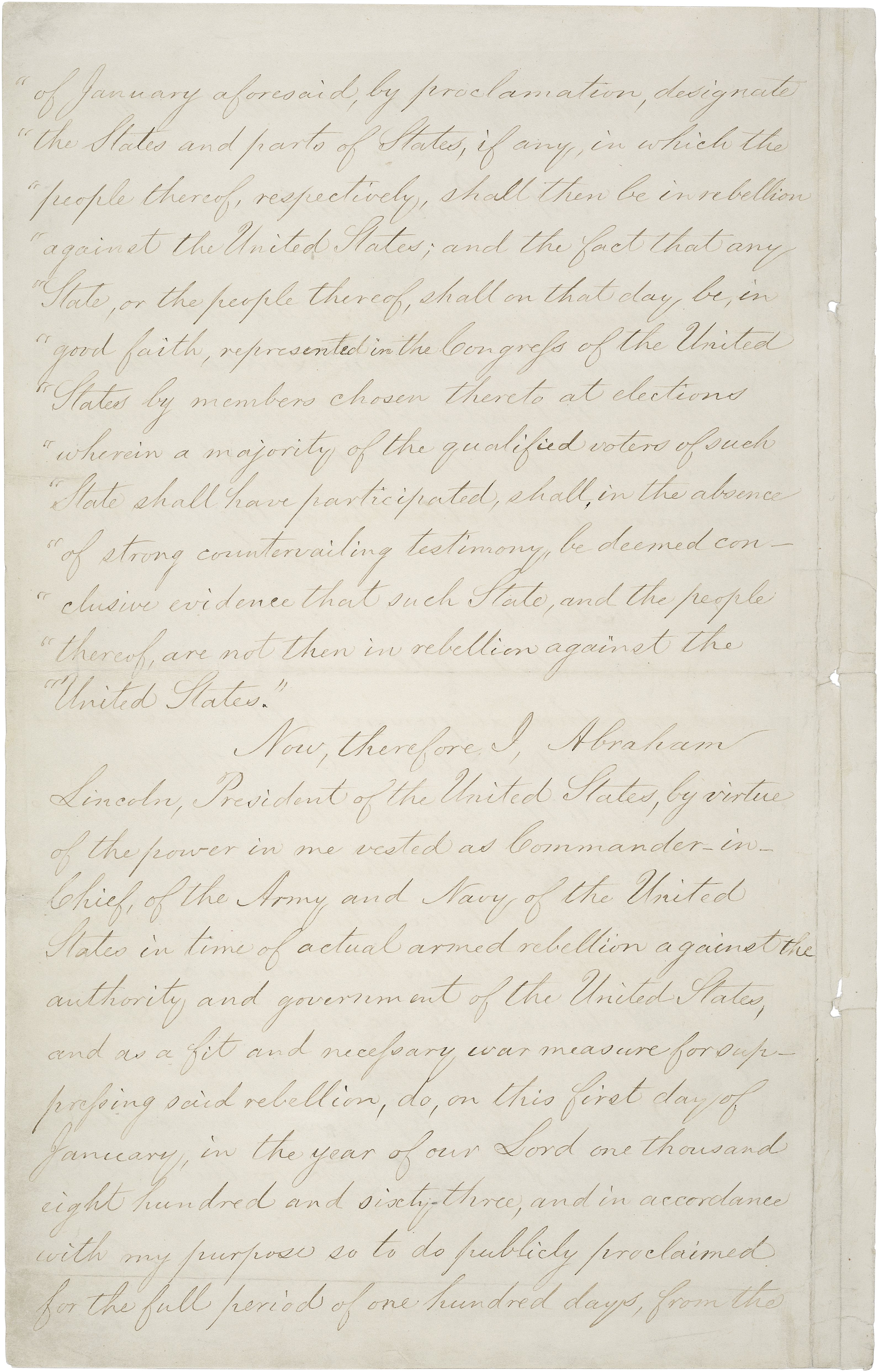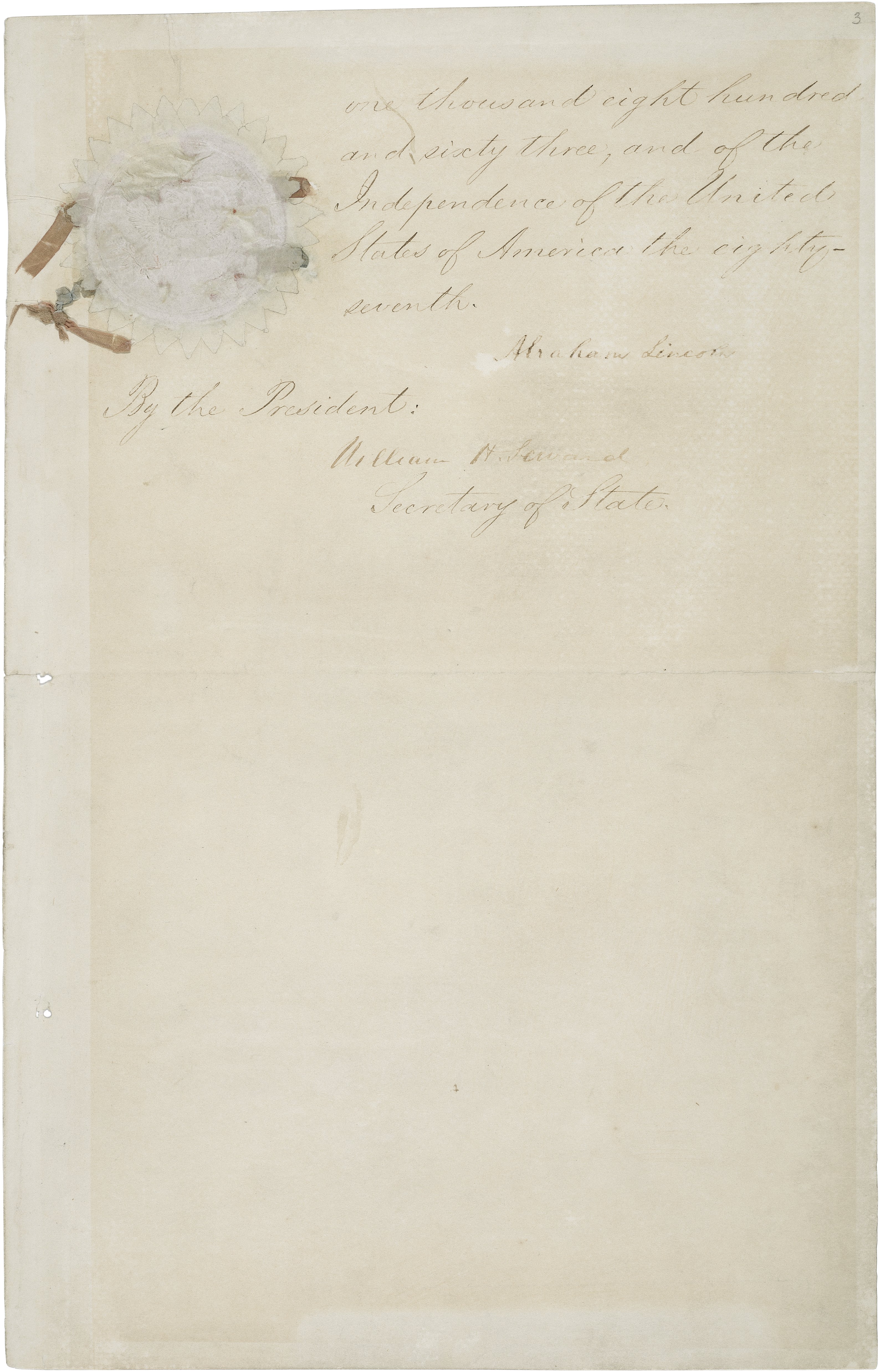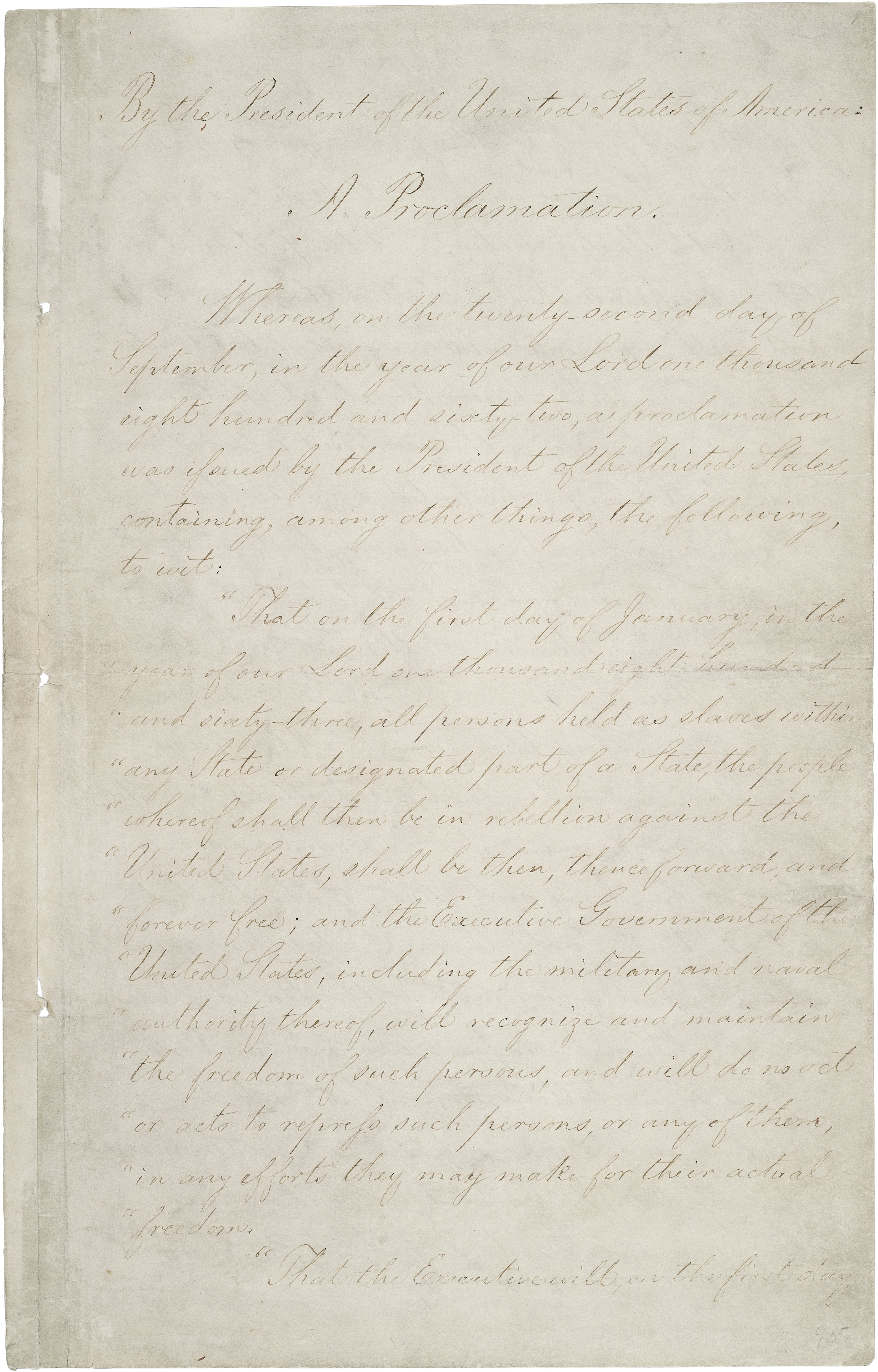 - Emancipation Proclamation, signed by President Lincoln, January 1, 1863.