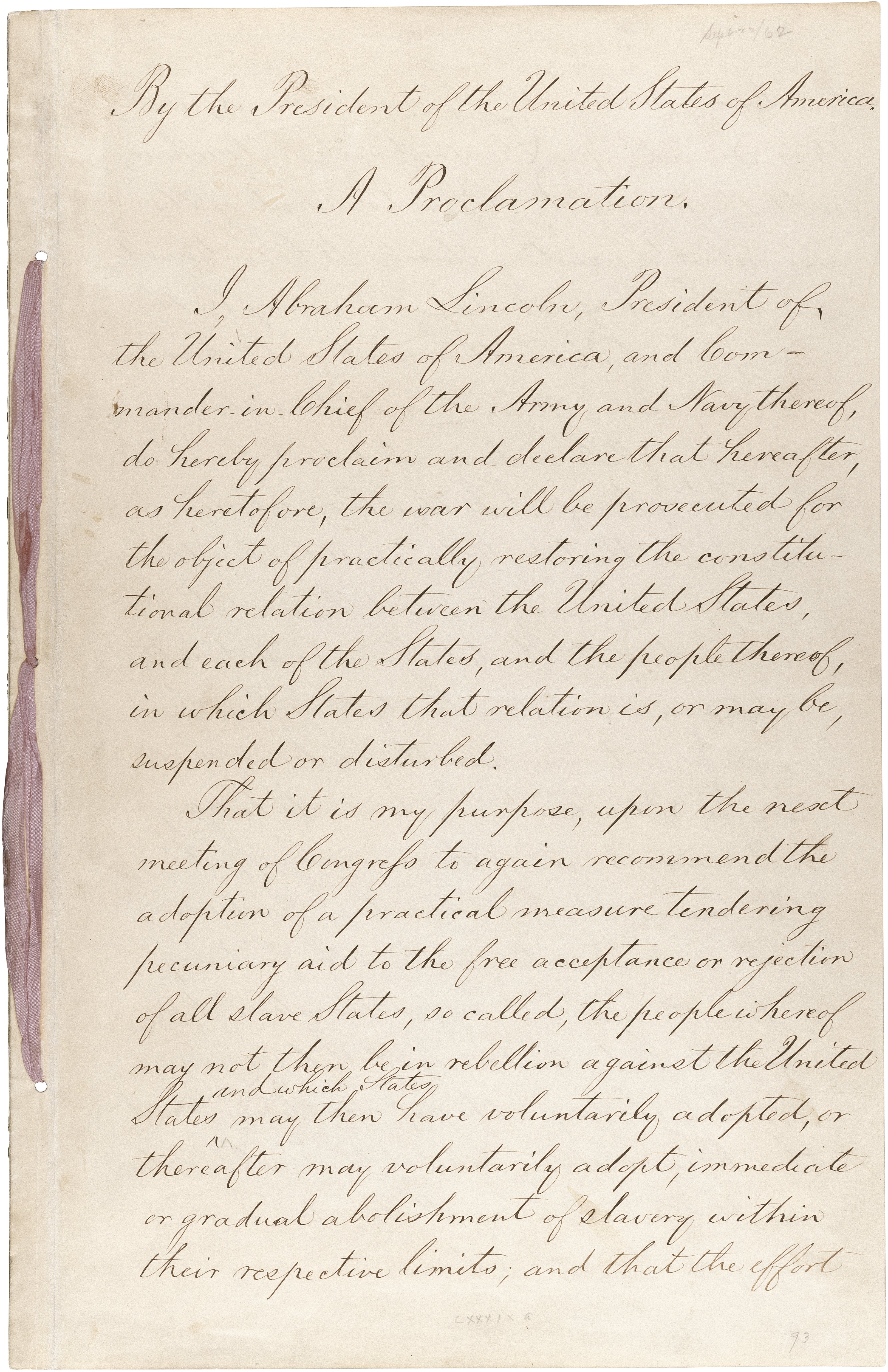 - The Preliminary Emancipation Proclamation, September 22, 1862.