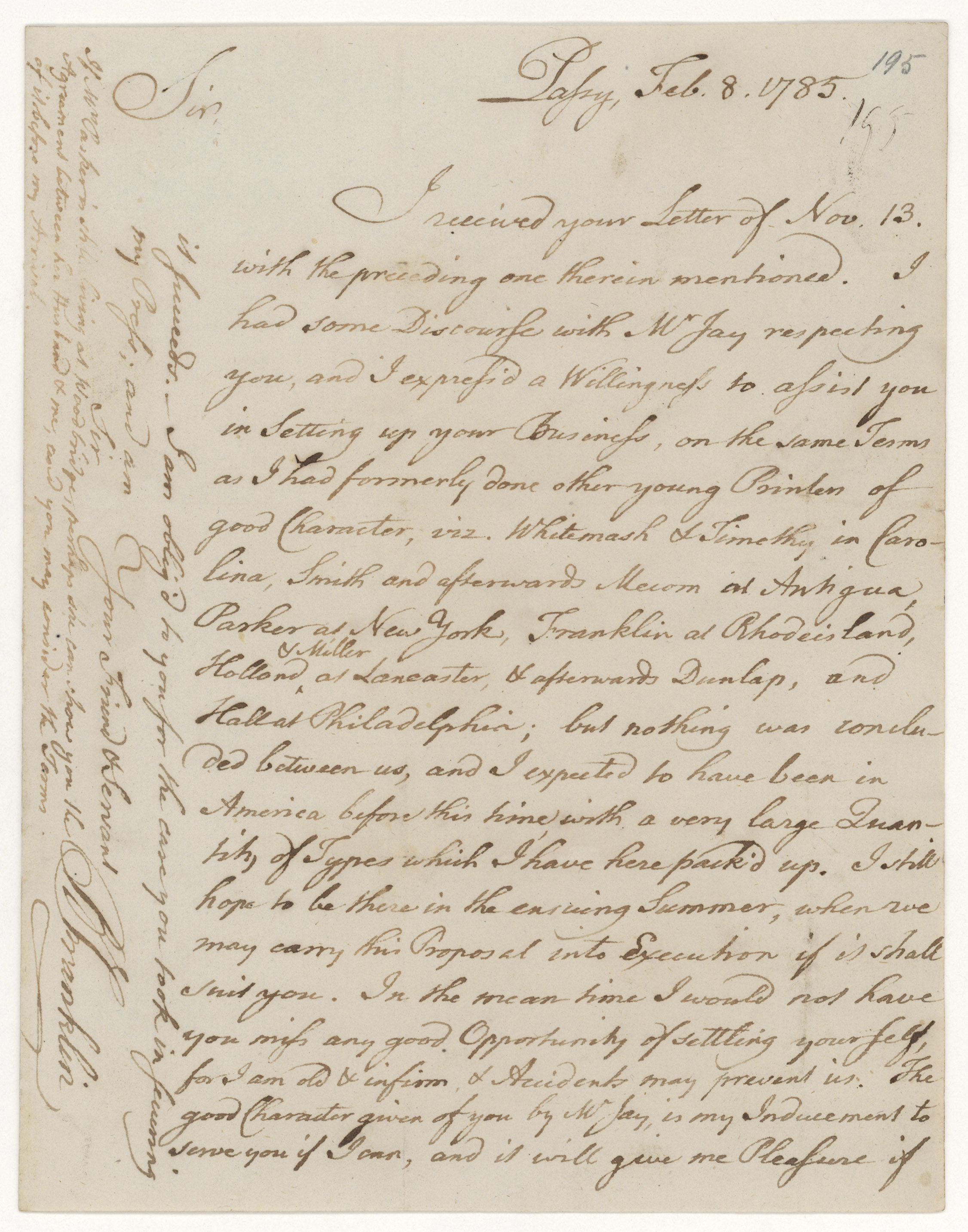 Letter from Benjamin Franklin to Francis Child, February 8, 1785 [RED 15126]