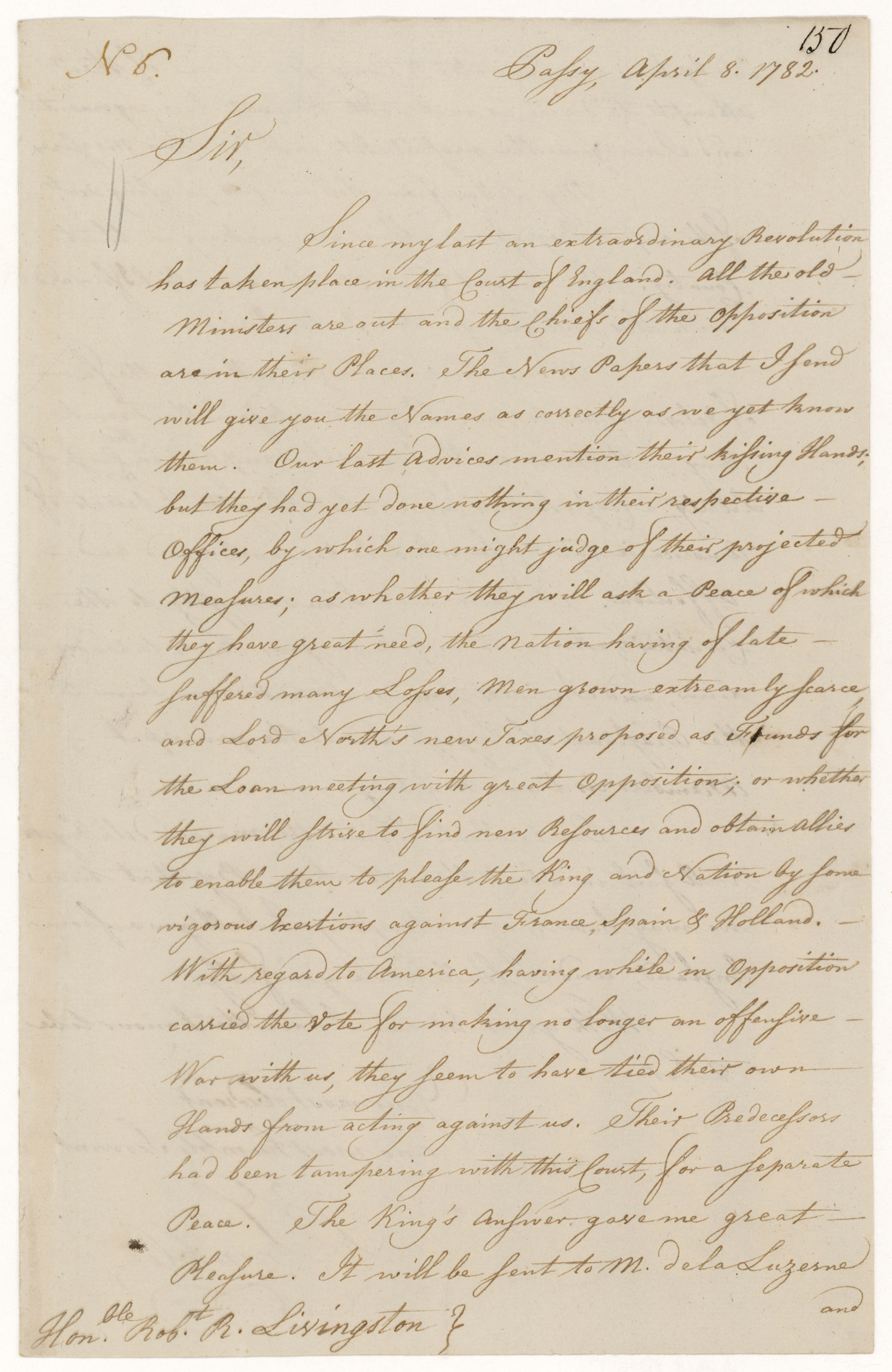 Letter from Benjamin Franklin to Secretary of Foreign Affairs Robert Livingston, April 8, 1782 [RED 21197]