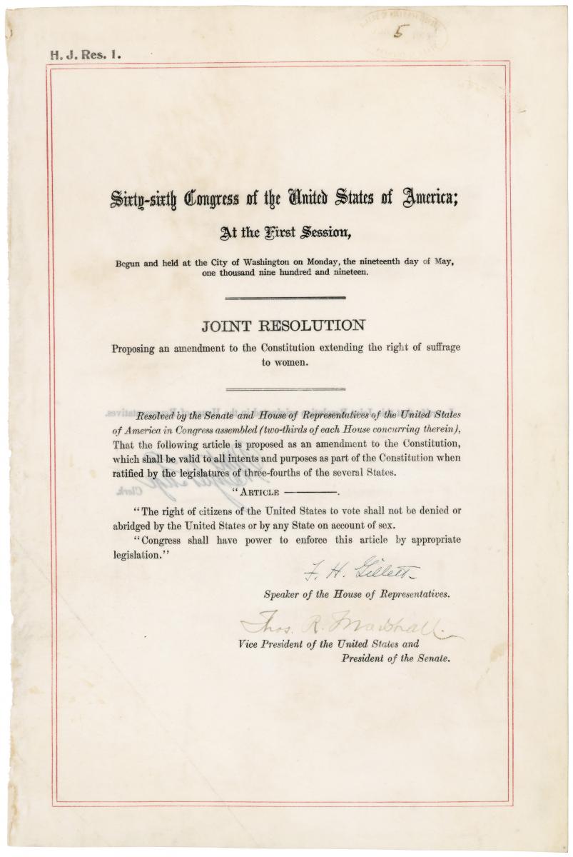 Joint Resolution Proposing the 19th Amendment (National Archives, General Records of the U.S. Government)