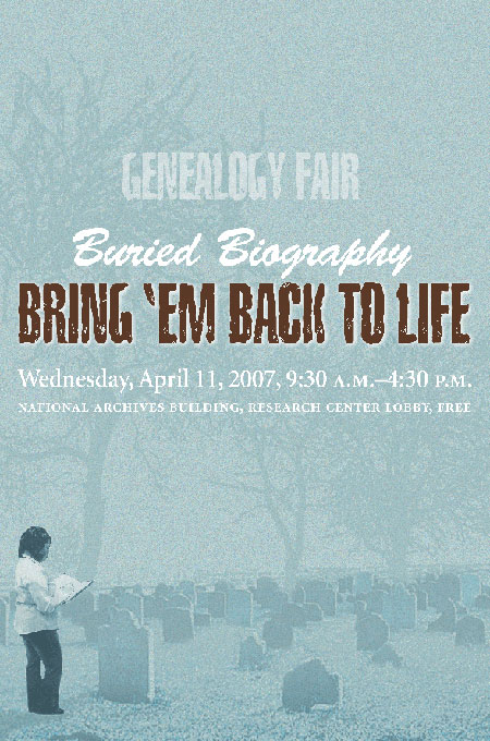 The National Archives will host its third annual Genealogy Fair on Wednesday, April 11, 2007. This year’s theme, Buried Biography: Bring 'Em Back to Life! will focus on Federal records located at the National Archives that relate to genealogy and cannot be researched online. Topics addressed will include immigration, naturalization, weather as it affects families and communities, black emigration, and family histories. The fair will provide information and guidance for experienced genealogy professionals and novices alike.