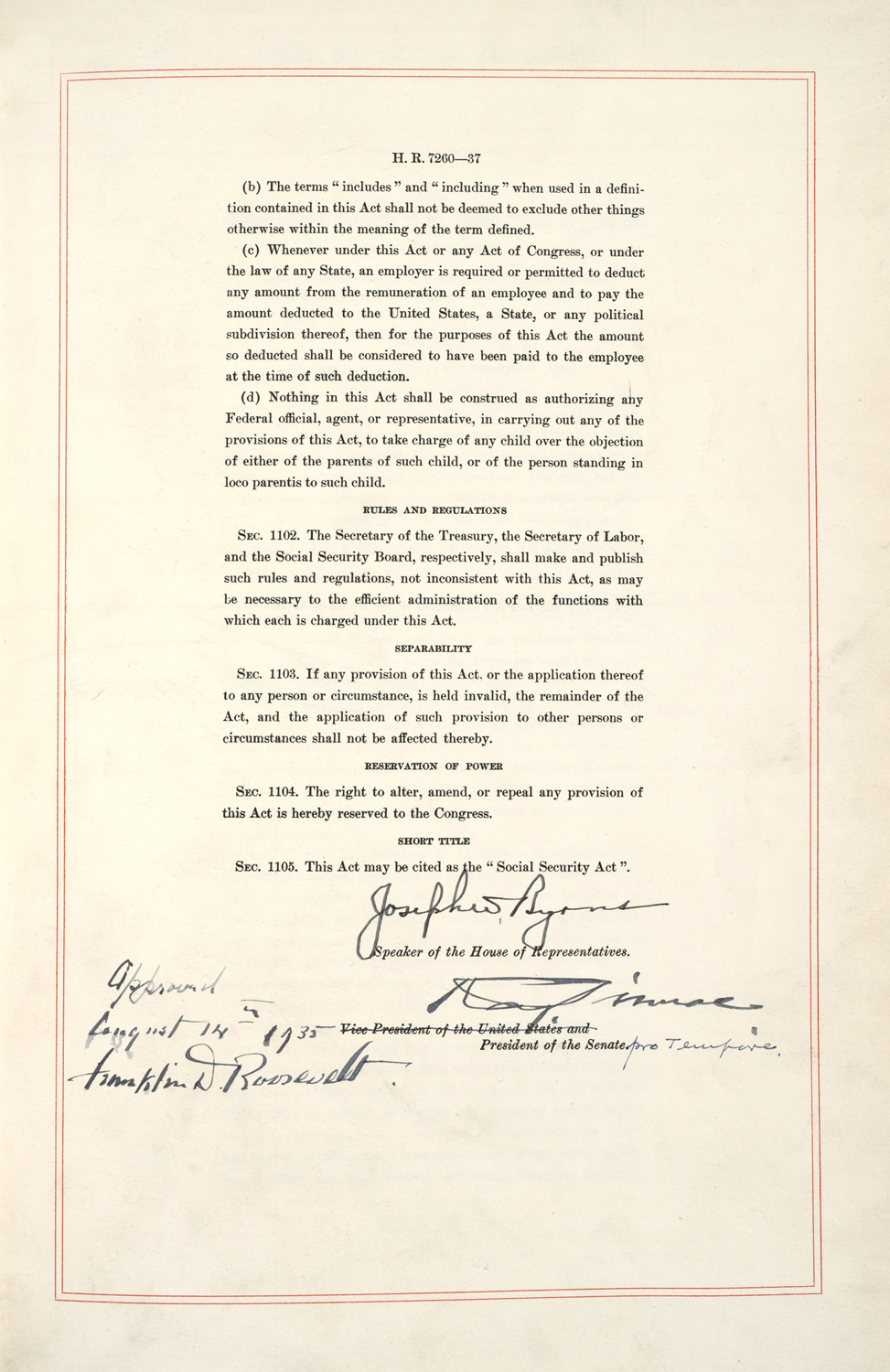 “If, as our Constitution tells us, our Federal Government was established . . . ‘to promote the general welfare,’ it is our plain duty to provide for that security upon which welfare depends.” — President Franklin D. Roosevelt (FDR), June 8, 1934