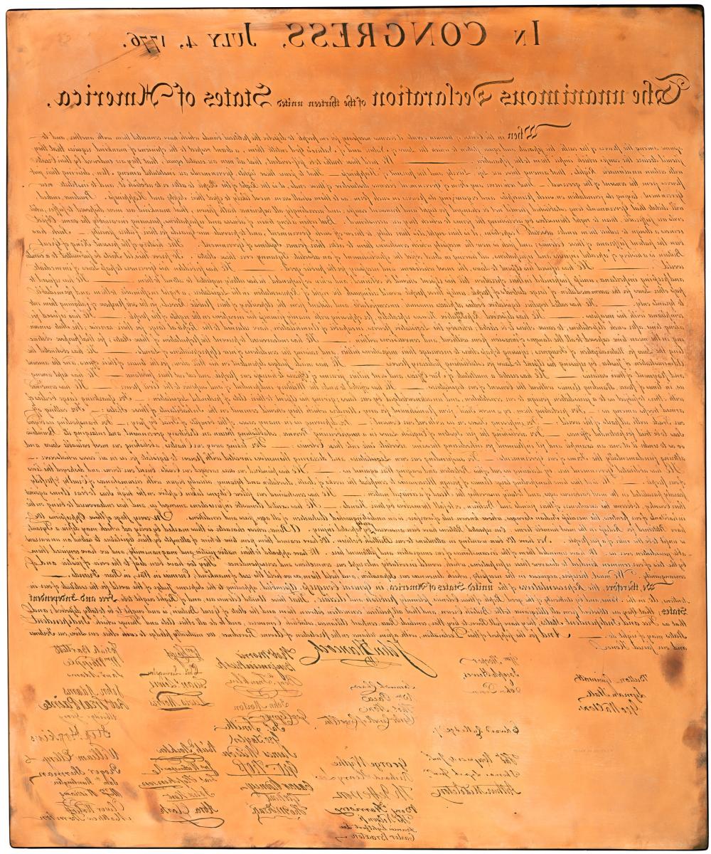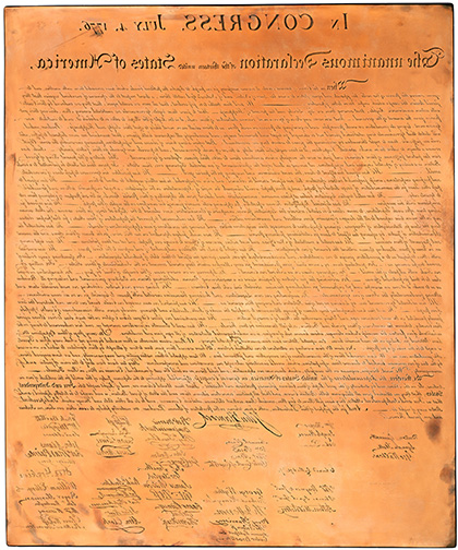 National Archives Copperplate Engraving of Declaration of Independence Off Display for Conservation Treatment In Advance of 200th Anniversary in 2023