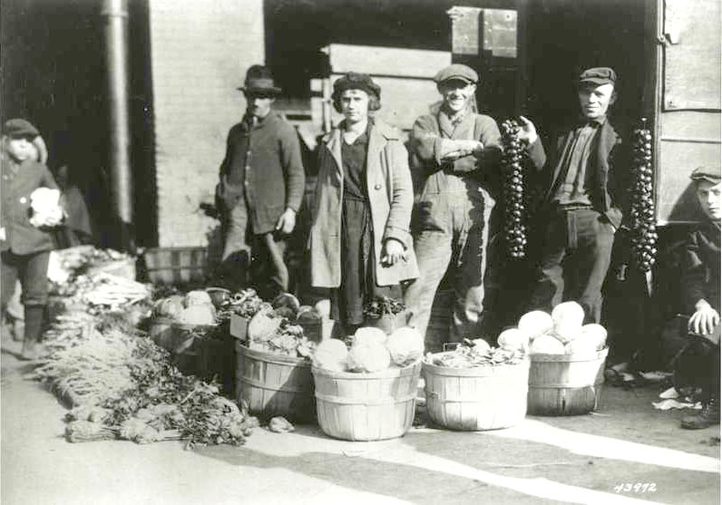 The curb market was the most informal market type, one that accommodated farmers and hucksters along a street designated for market purposes—a system suitable for cities too small to support an enclosed market building. The wholesale terminal market centralized the reception and distribution of wholesale foodstuffs in order to reduce waste of time and money and decrease the deterioration of products due to repeated handling. The bureau recommended this model for large cities with developed rail and water facilities, such as New York, Chicago, and Los Angeles. Wholesale terminal markets usually included sales warehouses, track yards, auction rooms, and cold-storage facilities. The third market type was the retail public market, a building with interior food stalls for retailers and exterior space for farmers.39