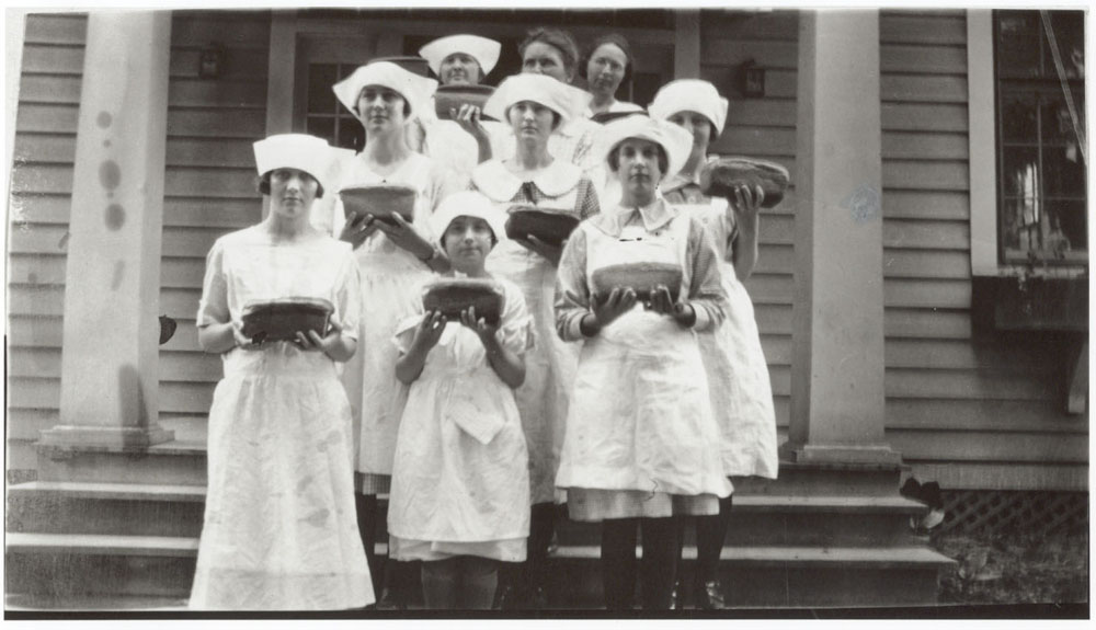 By conducting demonstrations at schools and other public sites, the women agents gave instructions on making fresh breads, pastries, and desserts and emphasized the value of using grains such as whole wheat. They also stressed the importance of fruits and vegetables as part of a balanced diet. Simply urging farm women to diversify the family menu was not enough, however, because the foods for a better diet were not always available. Gardening and canning consequently received much attention and became another principal area of emphasis by the Women's Division. The division even went so far as to teach techniques of butchering livestock, and agents taught poultry raising to enhance diets through meat and egg production.