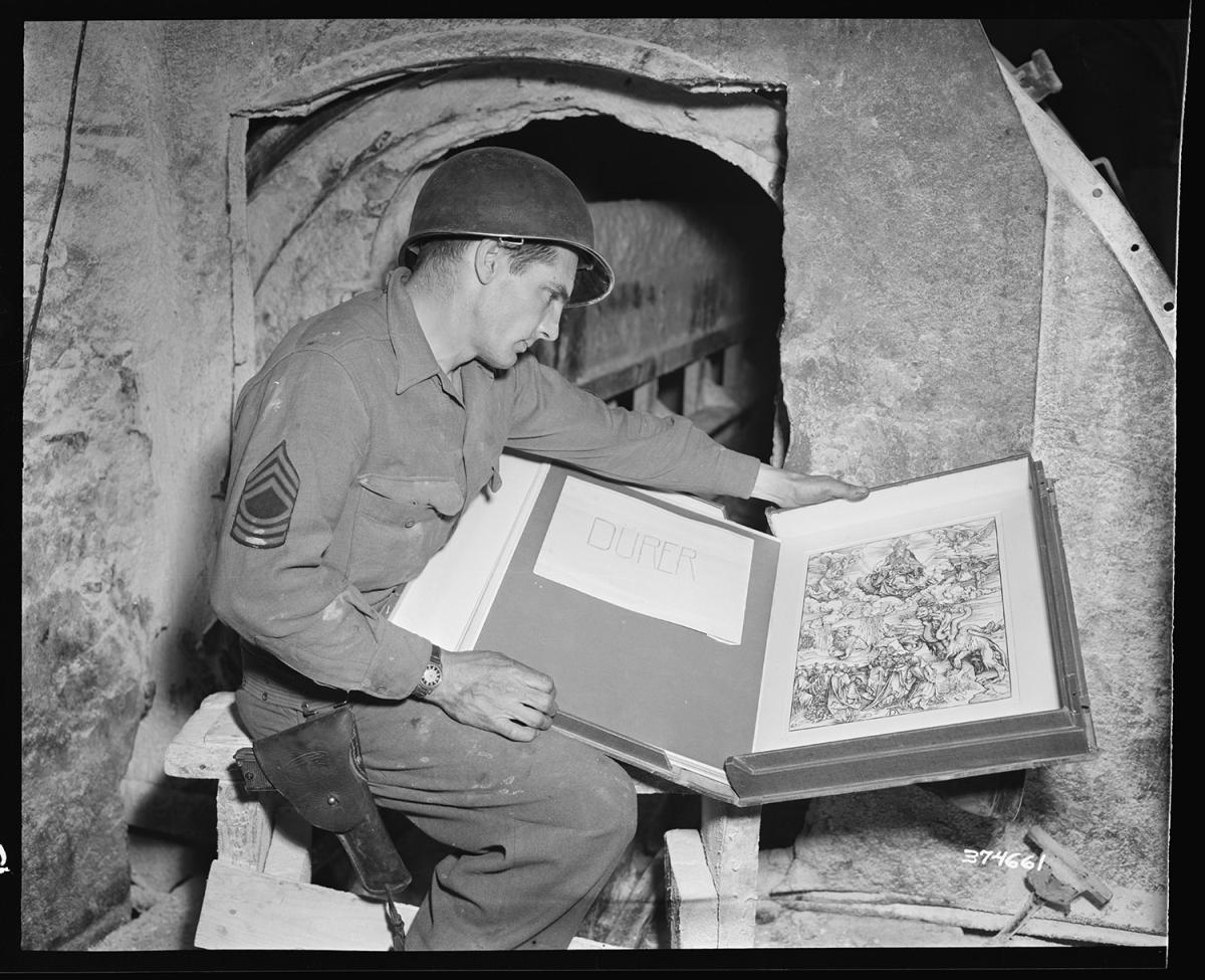 61. File 390-INFANTRY (357)-0.3 "A/A Rpt 357th Infantry Regiment Jan-May 45"; file 390-INFANTRY (357)-0.7 "Journal-357th Infantry Regiment Apr 45"; memorandum, "Loading Plan for Art Objects," 1st Lt. W. A. Dunn to Col. Bernstein, Apr. 14, 1945, file 390-INFANTRY (357)-3.22 "Memorandum-357th Infantry Regiment"; and file 390-0.3 "A/A Report-90th Infantry Division April 45," World War II Operations Reports, RG 407. "G-4 Functions in ETOUSA Operations" and "Bernstein Report," RG 331, NACP.