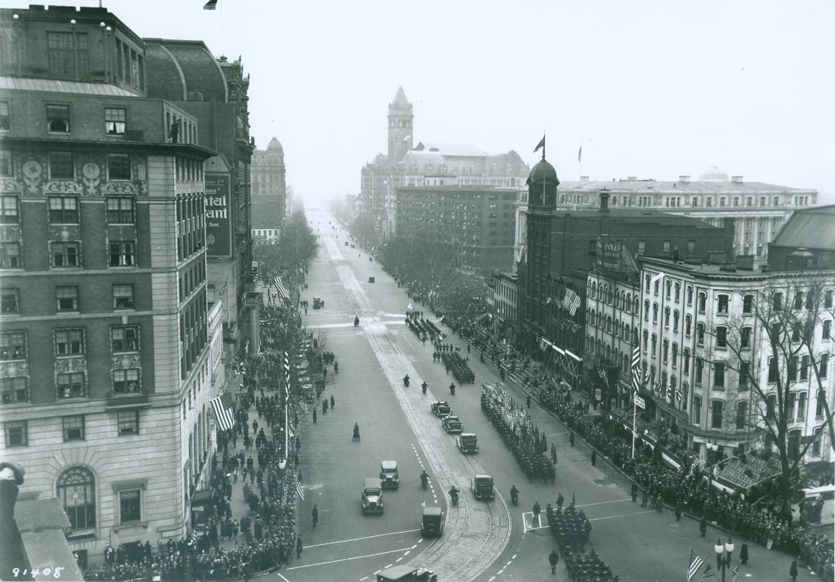 The first unofficial ball was held in honor of the first inauguration. President George Washington attended this event alone since Martha Washington had not yet arrived in New York. The first official ball as part of the inaugural celebration was in 1808 for President James Madison and was planned by his wife, Dolley. It was held in Long's Hotel in Washington, D.C., and was attended by the new President and first lady as well as outgoing President Thomas Jefferson. Guests paid four dollars to attend the festivities. Inaugural balls were also held in temporary structures, built especially for the festivities, which could accommodate more people. Large government buildings such as the Patent Office and the Smithsonian's Arts and Industries Building were also used. From 1885 to 1901, the balls were held in the Pension Building, which had a lovely ambiance and large rooms for dancing. Woodrow Wilson began an era of no official inaugural balls. He did not want to disturb the solemnity of the inaugural ceremony with festivities. Franklin D. Roosevelt brought back the official inaugural ball in 1933, but subsequent inaugurations for Roosevelt were more subdued due to the Depression and World War II. In 1949 President Harry Truman not only brought back the inaugural ball but brought in the idea of several balls so that many more people could participate and see the President and first lady. Although the festivities are part of the whole inaugural experience, each swearing-in ceremony truly marks the beginning of a new phase in American politics. It is a tribute to our forefathers that a successful election leads, time and again, to a peaceful transition of power to the successor. This transfer of power is a fine-tuned machine that ensures that there is always someone to lead the country. On January 20, 2001, another American political journey will begin, and the nation will give the "power of the people" to a newly elected President of the United States. As we celebrate this inauguration, here are some images from past presidential inaugural ceremonies, parades, and balls from the holdings of the National Archives.