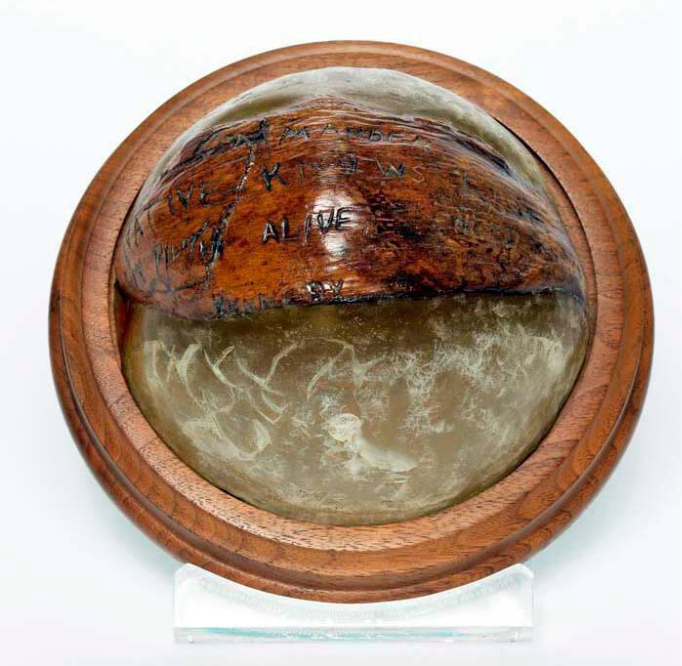 Kennedy decided to take the canoe back to Olasana; he stopped off long enough to gather the candy and the water to bring to the other men, leaving Ross to rest until the next morning. Arriving at Olasana, Kennedy discovered that the two men he and Ross had seen at Naru had made contact with the rest of the crew. The two men, Biuku Gasa and Eroni Kumana, were islander scouts for the Allies. Their hasty departure from Naru had left them tired and thirsty, and they had stopped for coconuts at Olasana, where Thom had been able to convince them that the crew was American. The next morning, August 6, Kennedy returned with Gasa and Kumana to Naru, intercepting Ross along the way as he was swimming back. The islanders showed the two Americans where a boat had been hidden on Naru. When Kennedy was at a loss for a way to send a message, Gasa showed him how it could be scratched into a green coconut husk. Gasa and Kumana left with the message—