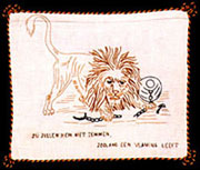 The flour was packed in cotton sacks by American and Canadian mills. Cotton was in great demand by the Germans, who used it to clean gun barrels, so the movement of the flour sacks through Belgium was carefully controlled by the CRB. The empty flour sacks were distributed to sewing schools and workshops, where some of them were turned into clothing, pillows, and other functional items. But many women chose to embroider the sacks with elaborate expressions of thanks to the Americans.