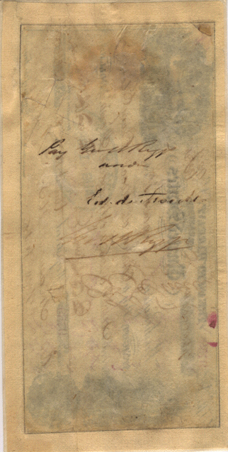And the back of a check or Treasury warrant can include an endorsement in the form of a signature. The back of the Treasury warrant for the purchase of Alaska, for example, was signed by Russia’s minister to the United States, Edouard de Stoeckl in August 1868. By endorsing it, he allowed for the transfer of $7.2 million dollars from the U.S. Treasury to Russia and the transfer of Alaska to the United States.