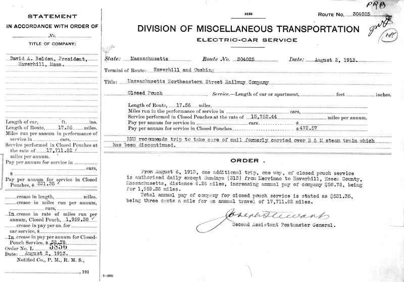 - Circular, "Railway Mail Service," January 12, 1923, Circular, "History of the Railway Mail Service," 1932, and Circular, "History of the Railway Mail Service," 1941, in boxes 4 and 5; File: Railway Mail Service, 1941;