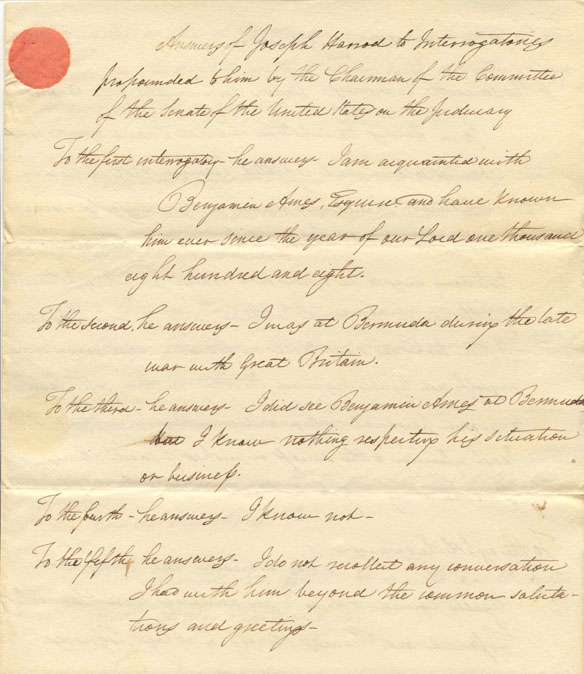 - Testimony of Joseph Harrod, May 11, 1824; Benjamin Ames File; Papers re Nominations [SEN 18B-A3]; 18th Congress.
