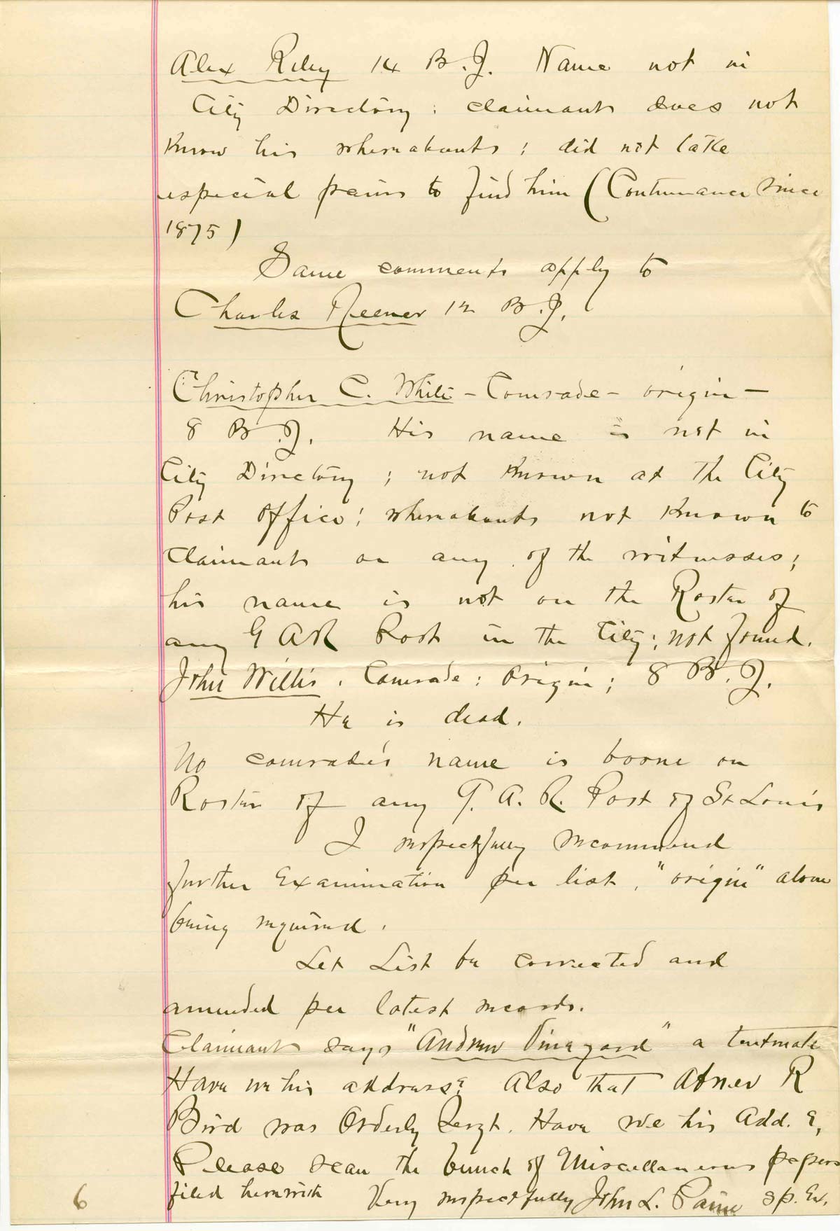 Letter of John L. Paine, Special Examiner, St. Louis, Mo., to the Commissioner of Pensions, Washington, D.C., Nov. 19, 1897