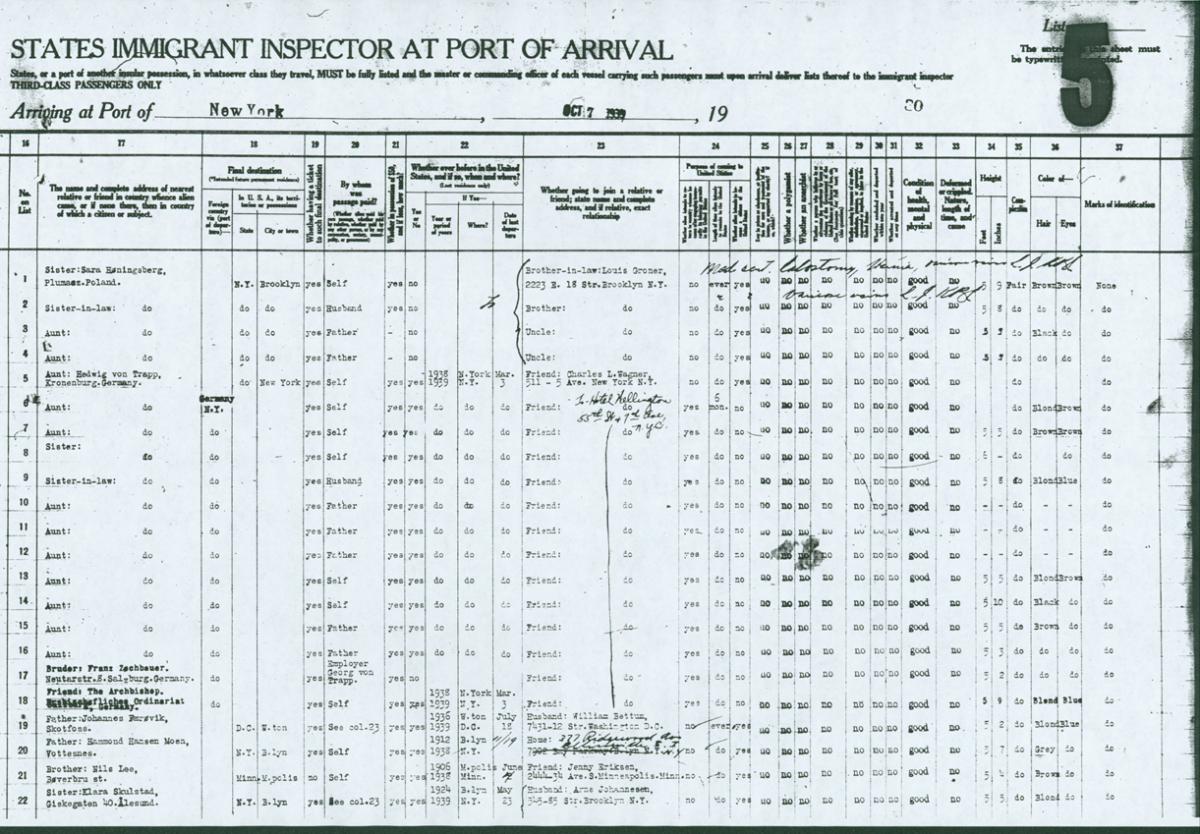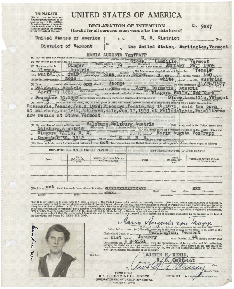 Part of the story of the real von Trapp family can be found in the records of the National Archives. When they fled the Nazi regime in Austria, the von Trapps traveled to America. Their entry into the United States and their subsequent applications for citizenship are documented in the holdings of the National Archives and Records Administration.