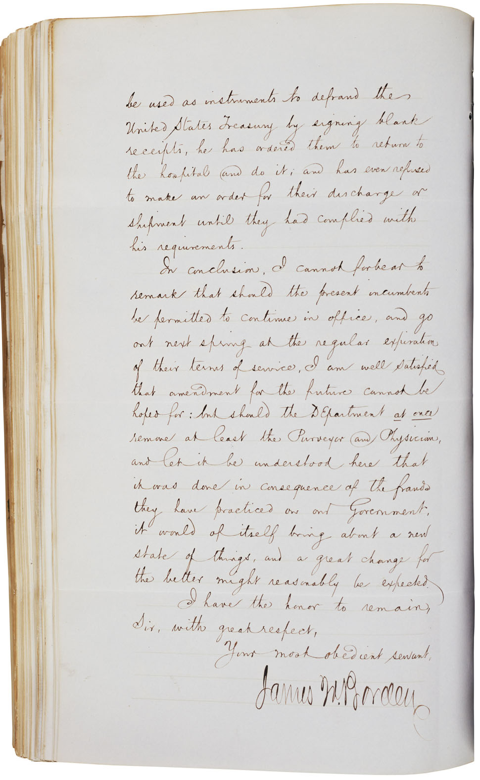 During Pratt's tenure as consul, Lett had spent nine months in the American hospital. Borden recorded Lett's account of the fraudulent practices and sent the deposition to Washington.