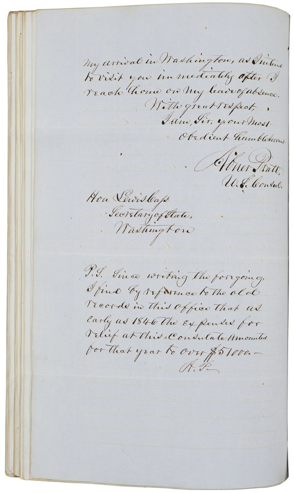 Mr. Pratt, the late Consul, on his departure for the United States left in the office only the sum of $1,946.63 and carried away with him the sum of $4,326.98, which sum should have properly remained in this office, to be credited, one third to the government, and two thirds to the various seamen upon their application for the same on their departure for the United States. The consequence is, that in a few days, the amount of $1946.63 actually left in the office by Mr. Pratt will have been disbursed, leaving one hundred and thirty seamen who are liable at any moment to become a charge upon this consulate as destitute seamen and to call at this office for their extra pay and will have to be refused in either case, in consequence of Mr. Pratt's unwarrantable and dishonorable conduct.