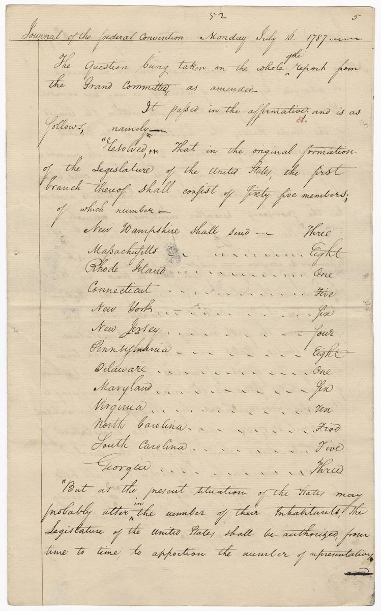 On July 15, after 10 days of debate on the report, during which Gerry continually called for compromise, it was put to a vote. It passed by a 5-4 margin. In calling for compromise, chairing the committee, asking the Convention to accept the "Great Compromise," and voting for it, Gerry played a crucial role in saving the Convention at its critical point.