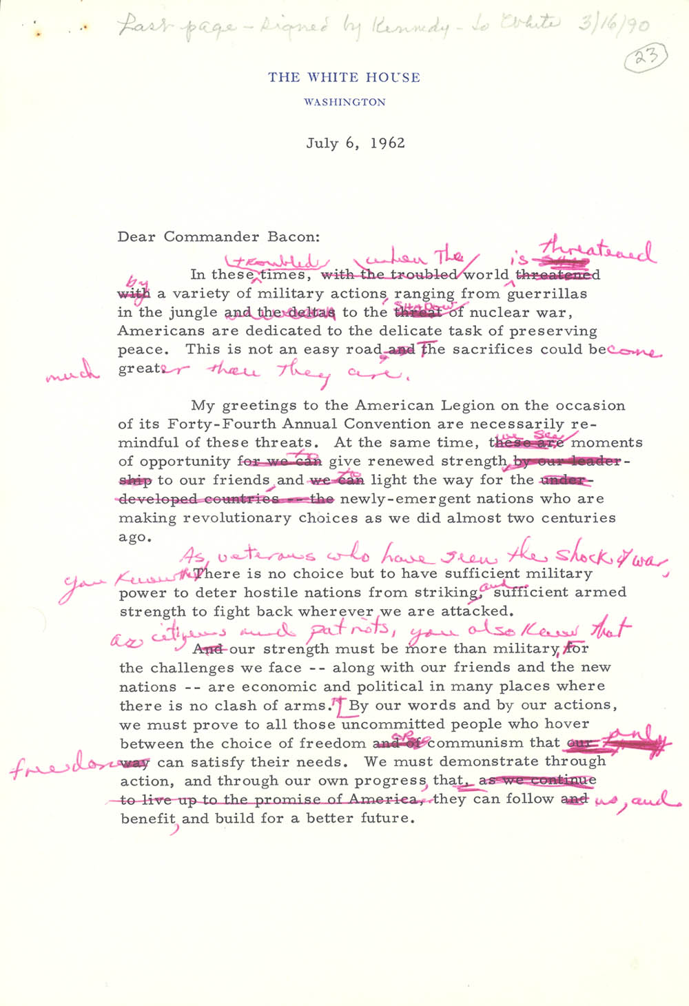 Many important documents related to foreign policy were recovered, including a May 25, 1962, memorandum with handwritten edits by Kennedy for the secretaries of state and defense on NATO and American foreign policy in Europe—"there are three or four presumptions upon which our policy has been based, which may deserve reexamination."