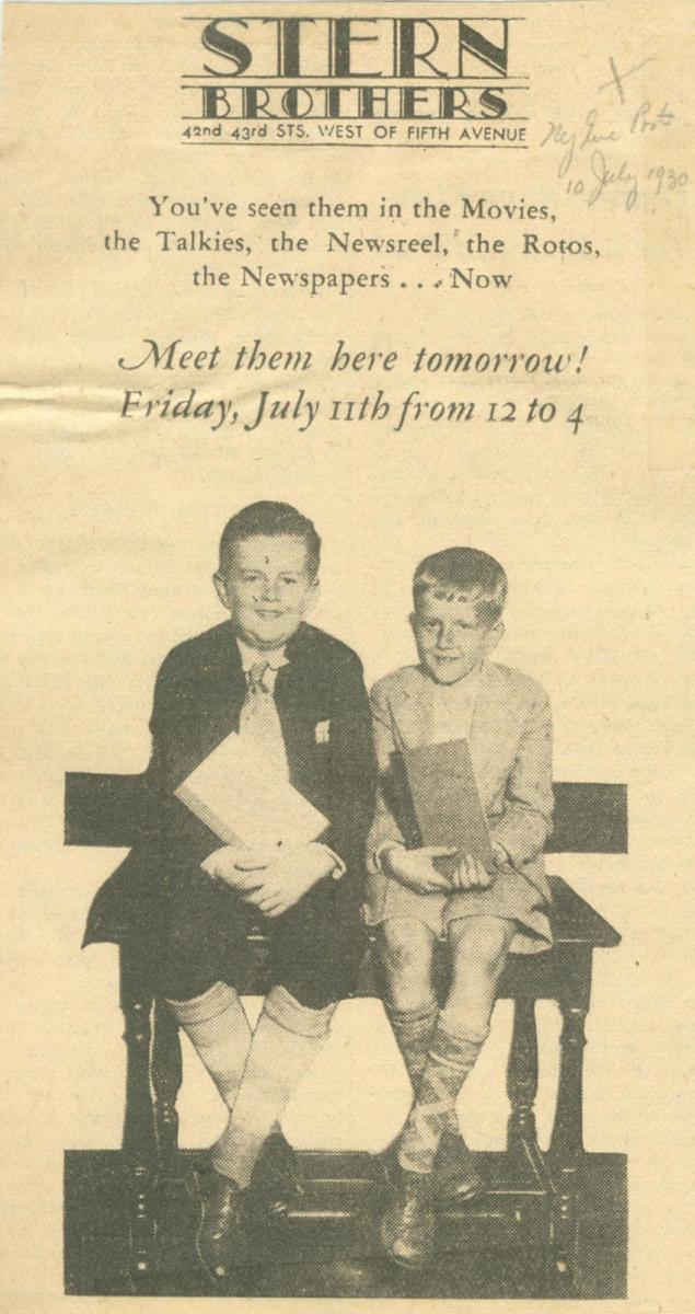 The day after their book signing in New York, the brothers delivered a radio address. Charles described himself as "half-owner and helper of Marsh's printing business." Then Billy, the senior partner, took over. He read a six-page address he had written describing his ascent to fame, peaking with his visit with the President. By this time the glow of fame was waning from exhilaration to exhaustion. In a two-room suite of the Hotel Roosevelt, where they and their parents were guests of the management, the tired young writers fended off questions. They seemed eager to go back to being boys.