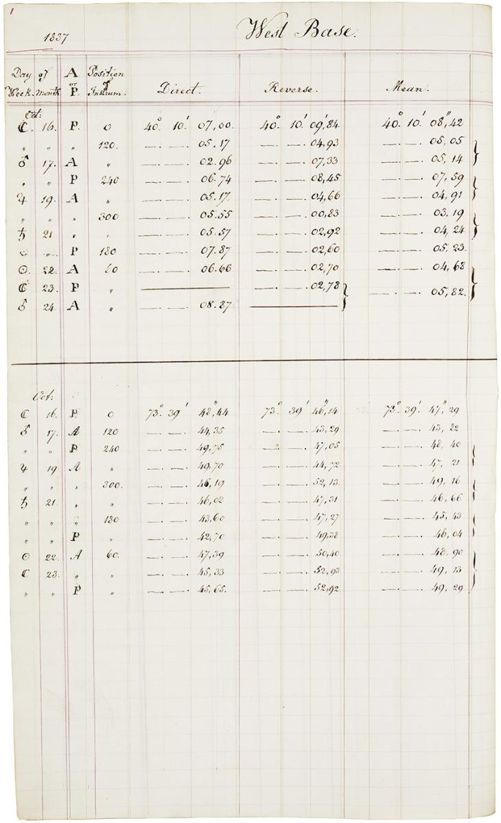 At night, they measured the positions of the stars; by day, they measured the directions and angles to signals on other hills. This mathematical analysis of time and the stars yielded Hassler the position of the hilltop and allowed him and others to trace a web of triangles across the landscape, anchored here and there by a carefully measured baseline.
