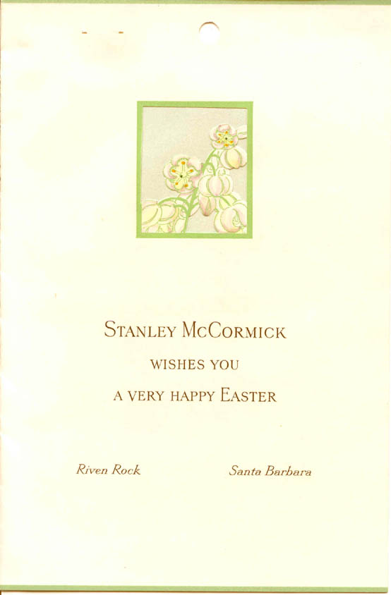 Dr. White's files contain copies of Stanley's medical reports, court filings, letters from Katharine, Anita, Harold, Stanley, and Dr. Kempf, as well as copies of much of their correspondence with one another. Also included in the files are two Easter cards from Stanley.