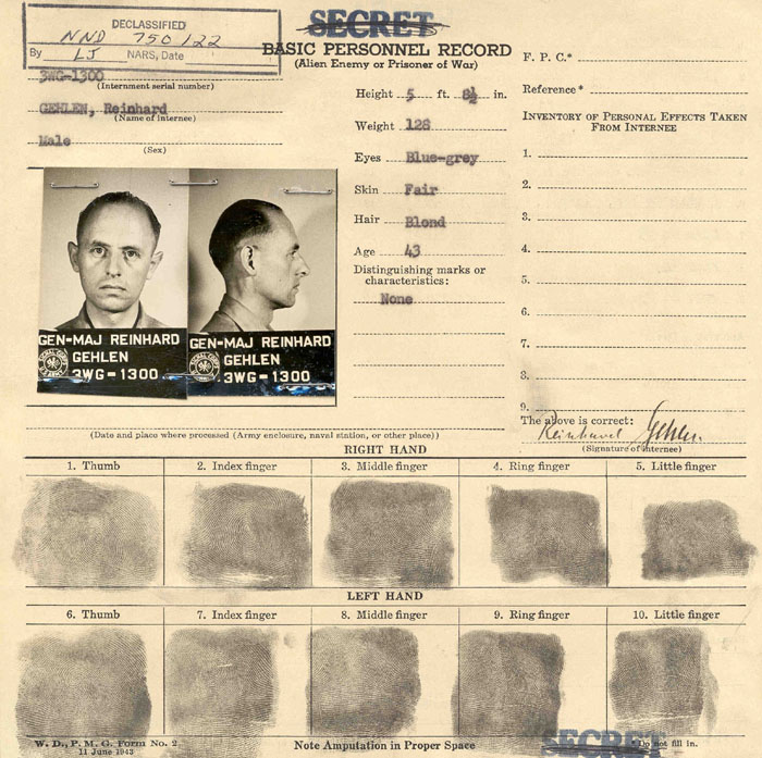 In particular, the final report cites the U.S. Army's involvement with German spymaster Reinhard Gehlen in the postwar period through the mid.1950s. Gehlen had been Hitler's top intelligence officer on the eastern front, but in the postwar era he led an extensive network of spies, some with Nazi and collaborationist backgrounds that made them potential targets of Soviet agents.