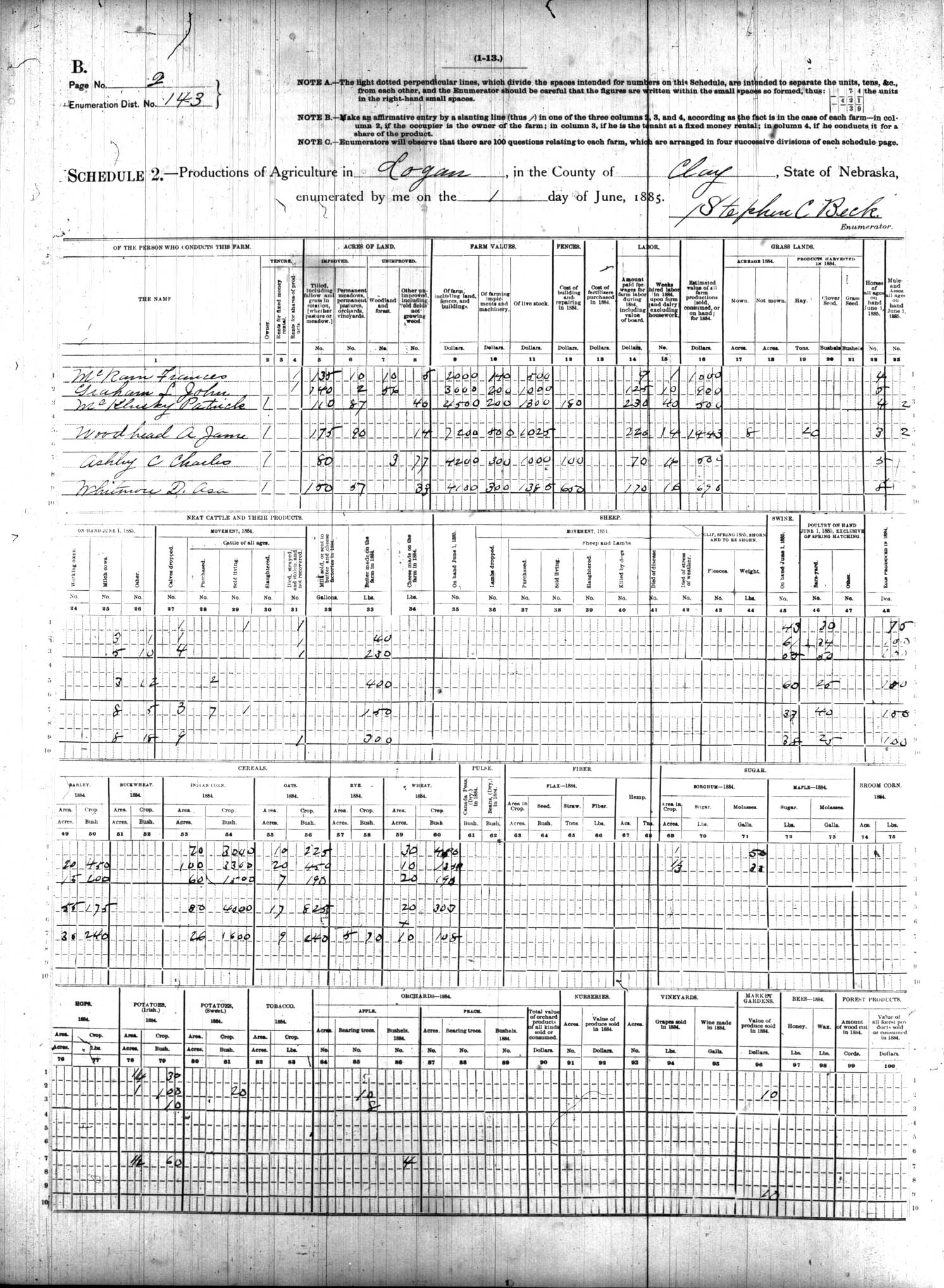 2. Agricultural Schedule: Clay County, Nebraska, ED 143, p. 2; in ibid.