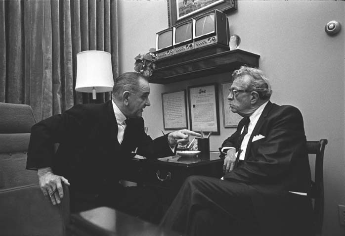 "We have talked long enough in this country about civil rights," he told Congress in his first speech as President. "We have talked for one hundred years or more. It is now time to write the next chapter and write it in the books of law." Eventually, the key to passing the measure was Senator Everett Dirksen, the Republican leader from Illinois. Only Dirksen had the clout to persuade his fellow Republicans to vote to break a filibuster being staged by opposition Southerners. Dirksen was not known for any particular interest in civil rights—but he was known to be highly susceptible to flattery. So Johnson—at his persuasive best, or his shameless worst, depending on how you look at it—went to work. And the Texas President assured the Illinois senator that if he would take the leadership in getting the bill passed, Illinois school children would hereafter know only two names to honor—Abraham Lincoln and Everett Dirksen. Finally, Dirksen announced his recognition of an idea whose time had come. The bill passed. That was in 1964.