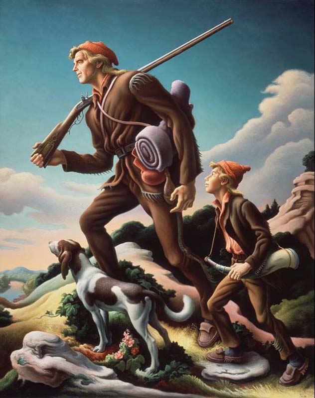 Benton was already well into his work of researching the mural theme by the time he signed the contract. He had learned long ago, when he was a young artist in New York and Paris, that he didn’t want to paint solely from his imagination. He wanted to paint realistic themes, often on historical subjects, that a wide public would like and appreciate. He developed a style that one critic called "semi-expressionist quasi-folksy realism," which was well suited to the kind of public art that he wanted to create.